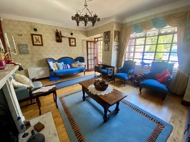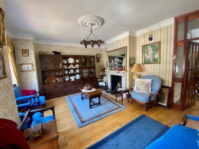 Nice room with solid wood flooring, open fire with marble fireplace and hearth. ceiling cornicing and ceiling rose.