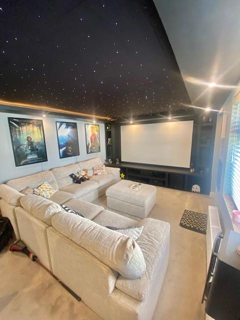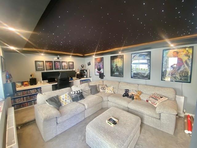 This room is an extra living room plumbed with radiators, has cavity insulated walls and has light power and the network system , carpet flooring, star lights in ceiling.