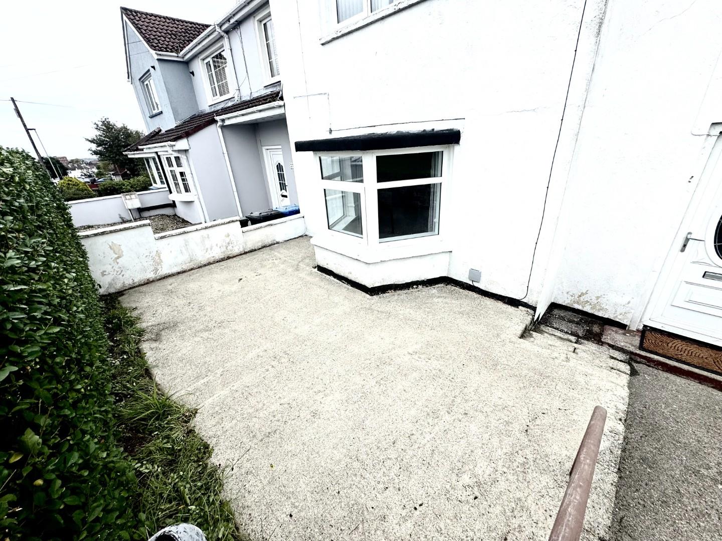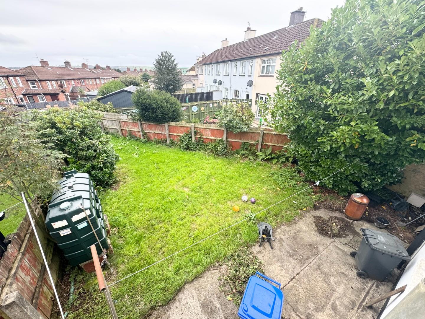 REAR: large enclosed garden, side garden and front paved area with fence and gate.
