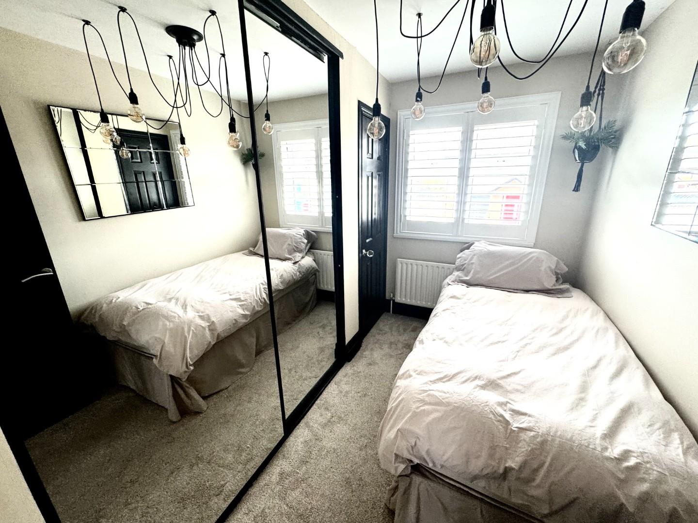This single room features double built in mirror slide robes,, carpet flooring,