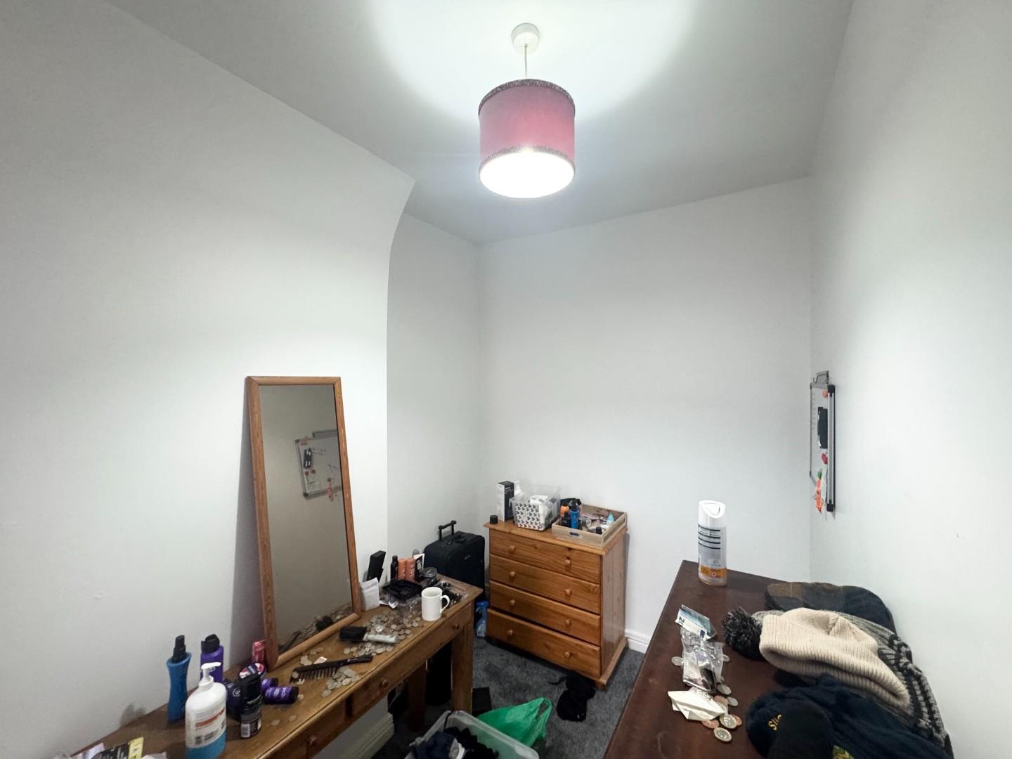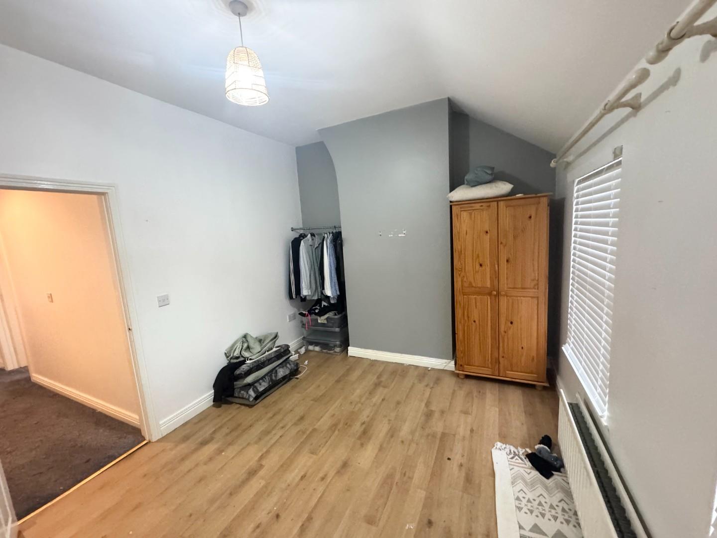 This spacious double room has laminate flooring and open fire with cast fireplace and slate hearth.