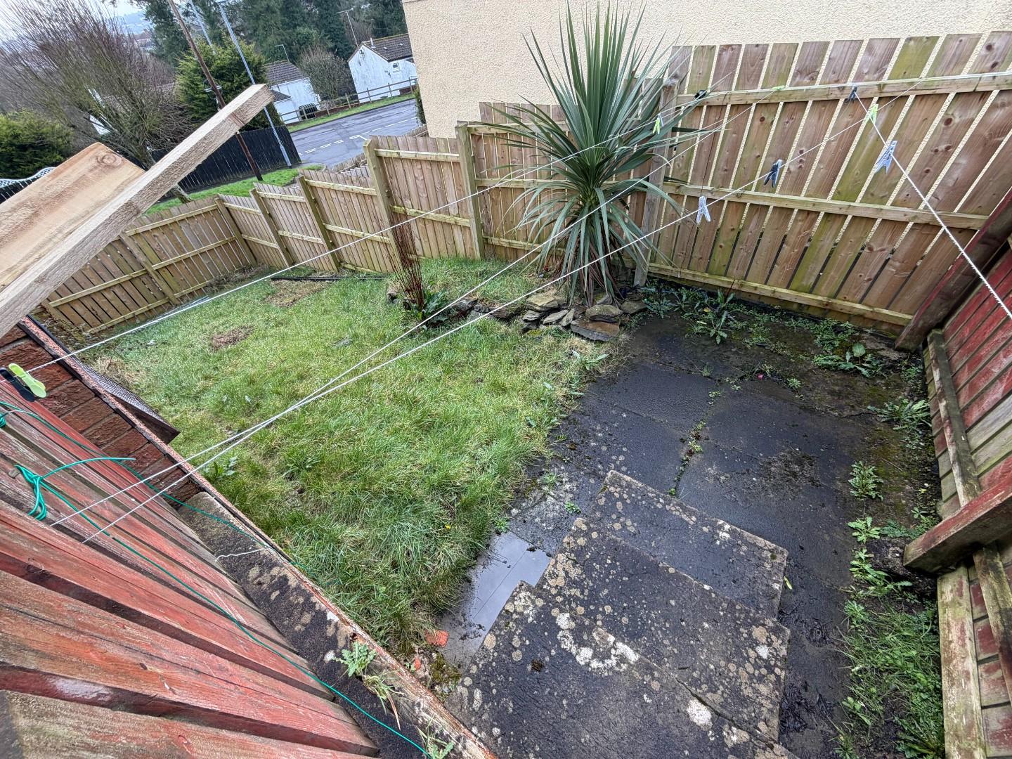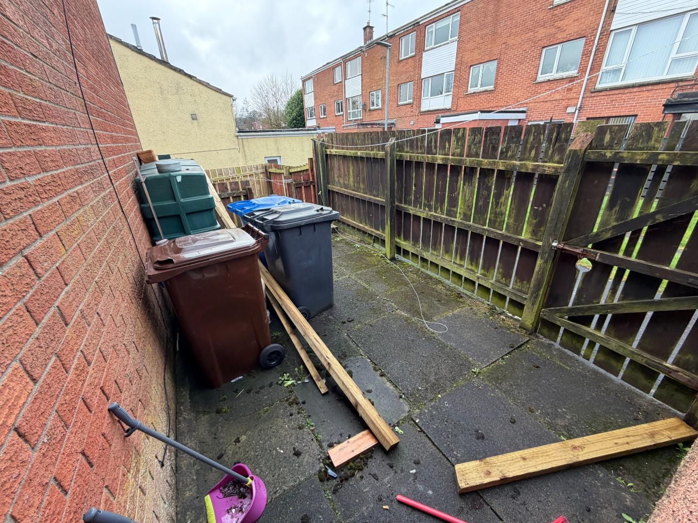 There is a small enclosed yard for bins and oil tank and then there is a larger area with garden and patio all enclosed.