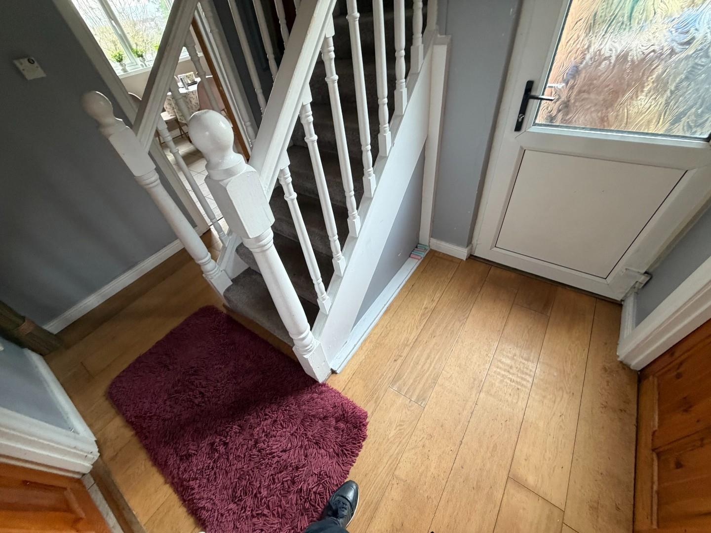 carpet stairs to first floor with hotpress