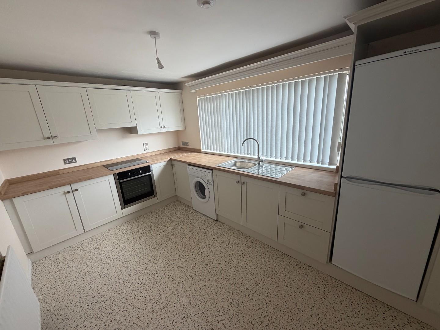 New kitchen with high and low level units, stainless steel sink and drainer, integrated electric hob and oven with extractor above, washing machine and new fridge freezer all included. New linoleum flooring.