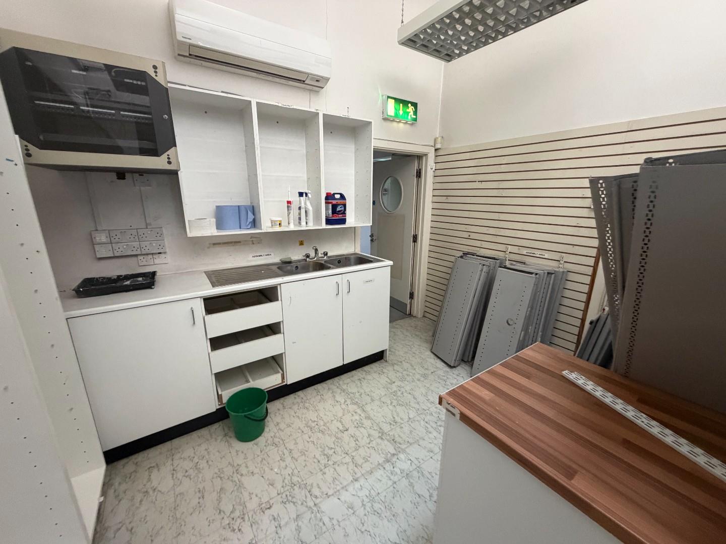1200sqft with roller shutters and air condition, There is a toilet on the ground floor and a small office