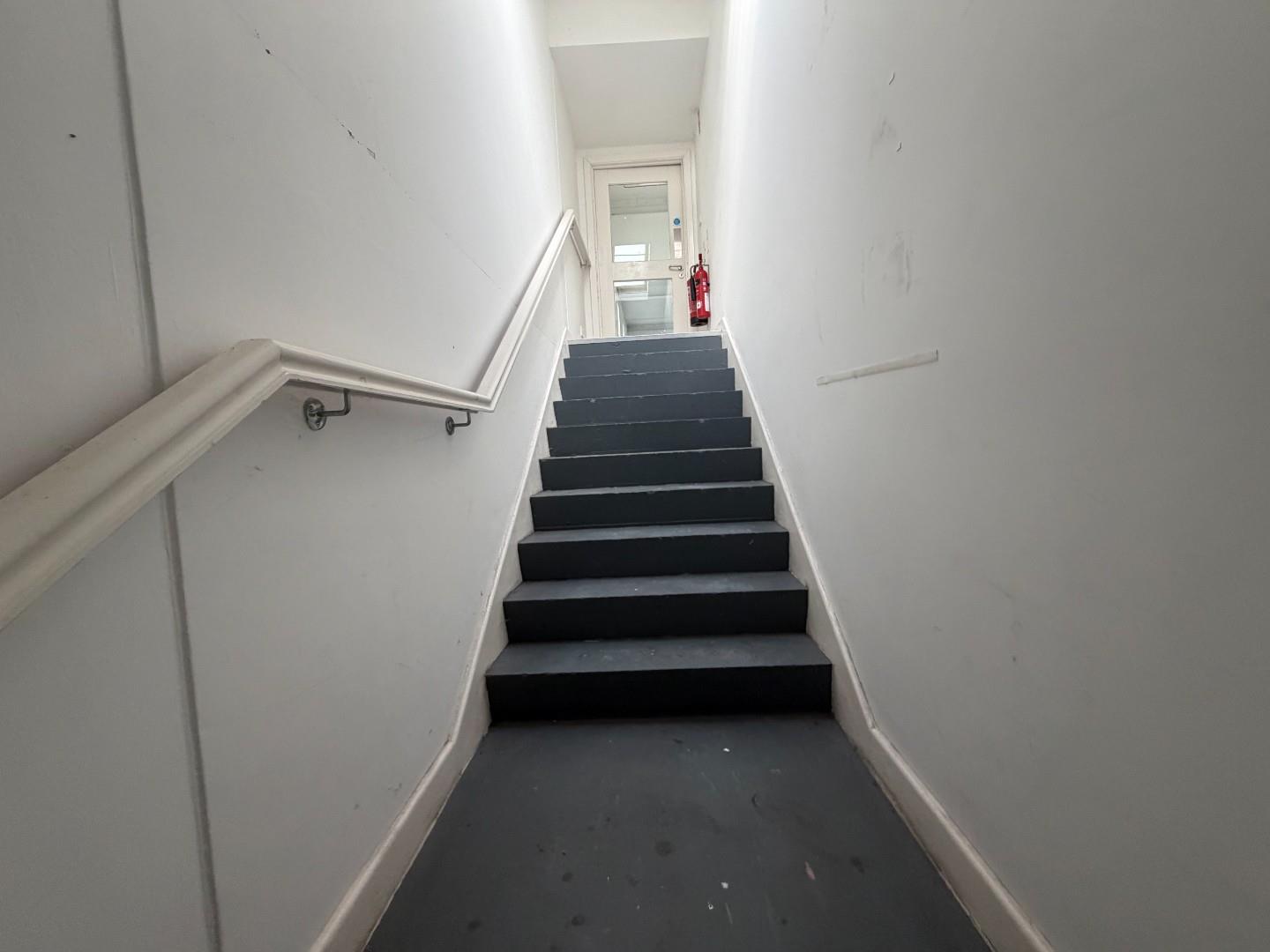 1000sqft accessed by stairs there is an emergency exit and electric heating.