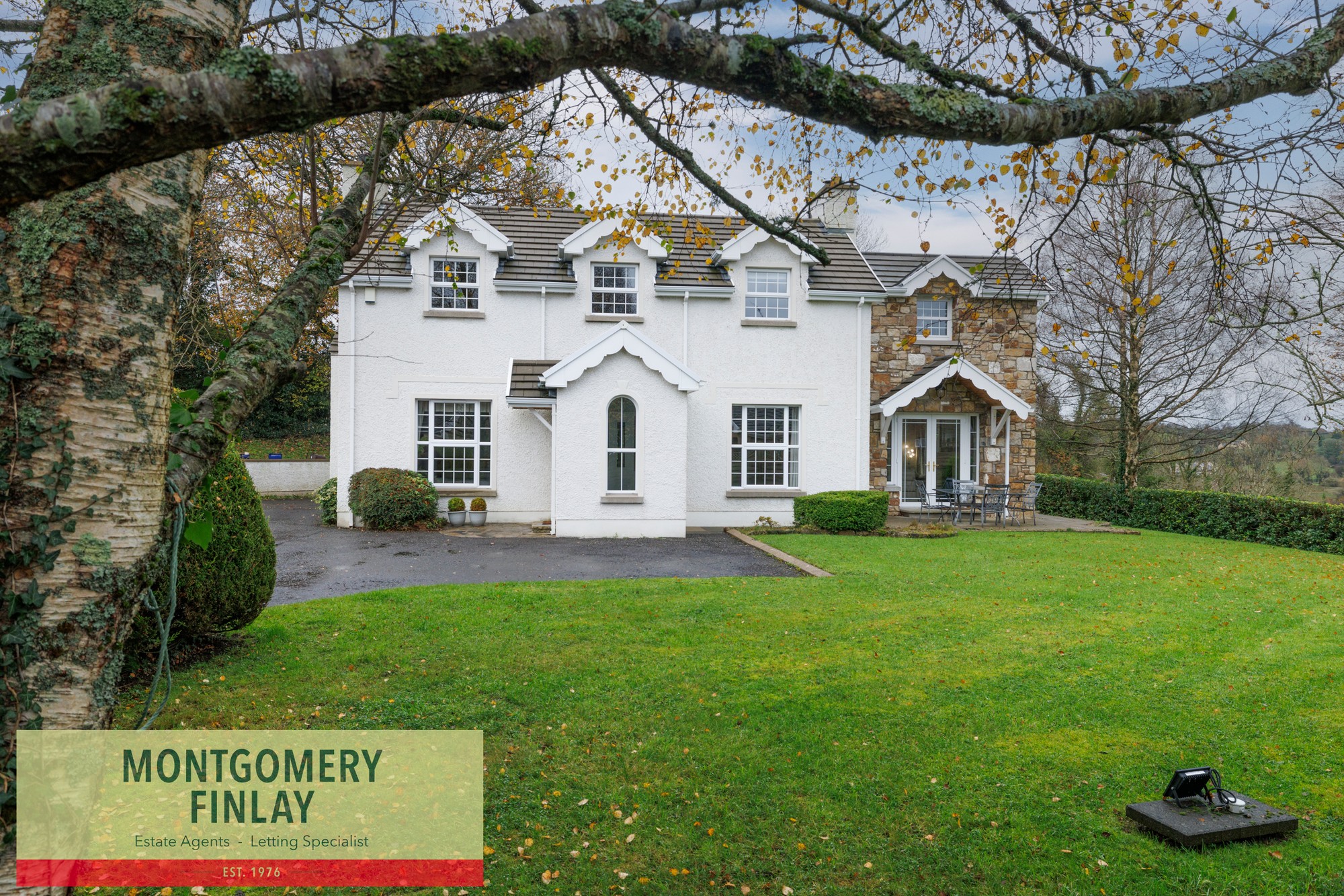 Welcome to this truly exceptional 5-bedroom detached family home, perfectly positioned on an elevated site within the highly sought-after Knockmore Heights development. Offering panoramic views over the surrounding Fermanagh countryside, this beautifully presented property combines modern luxury with timeless charm. Boasting generous living accommodation, including an open-plan kitchen, dining and living space flooded with natural light, this home is designed for both relaxation and entertaining. The interiors are finished to an impressive standard throughout, featuring handcrafted kitchen units, granite worktops, and elegant fireplaces. Mature trees, landscaped gardens, and extensive off-street parking enhance the sense of space and privacy. Viewing is highly recommended to appreciate the quality and warmth of this impressive family home.