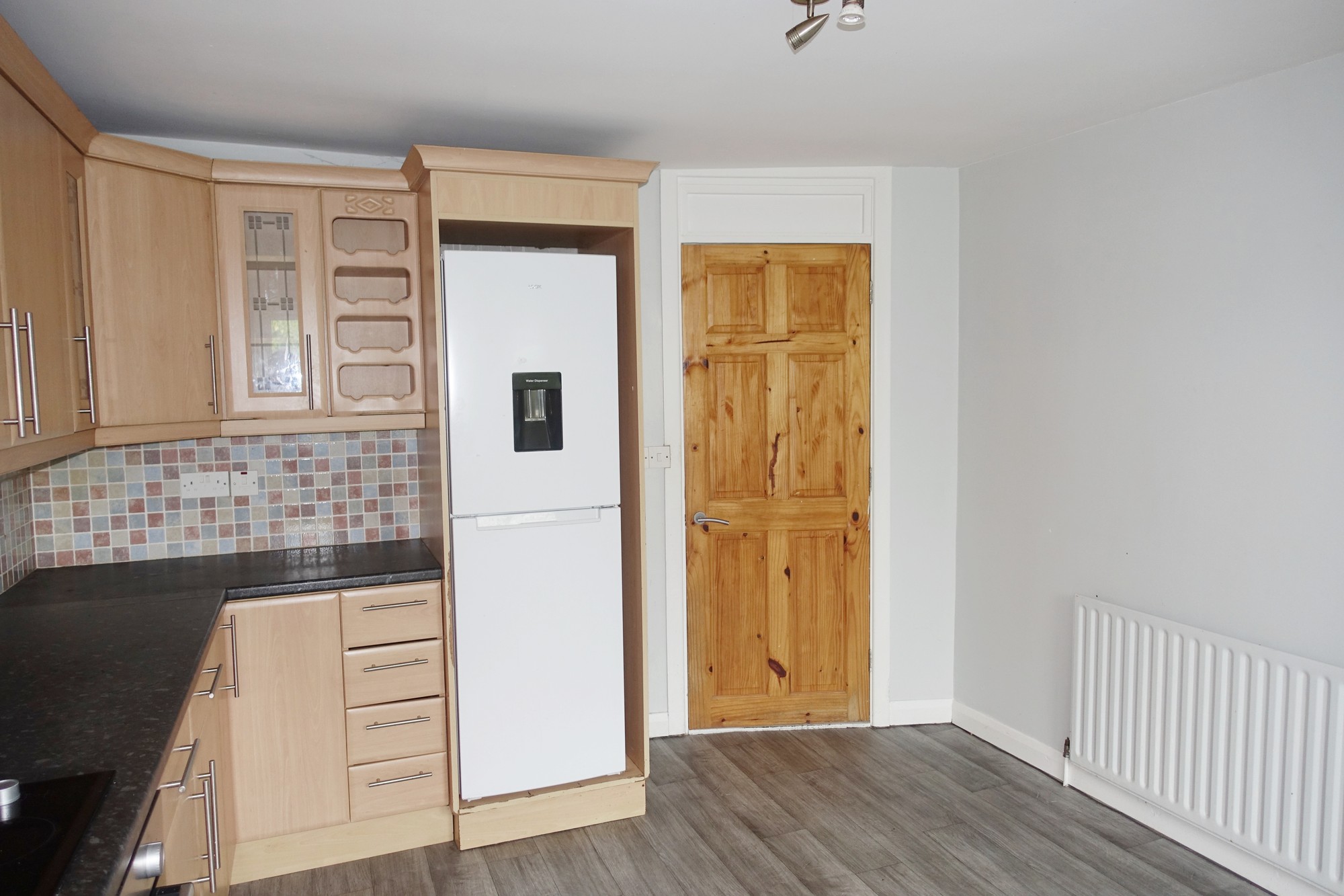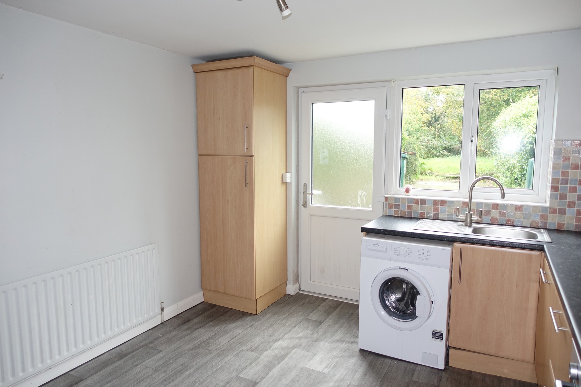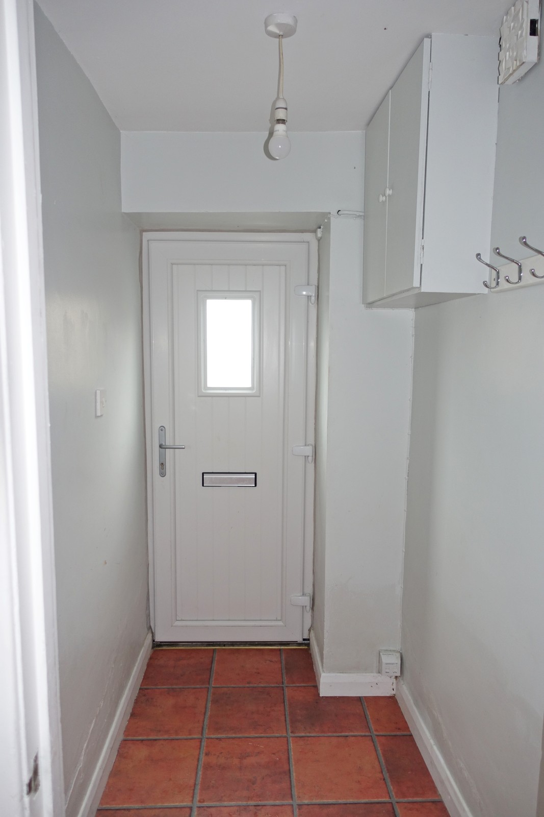 PVC exterior door with glazed inset, laminated floor, glazed door to lounge.