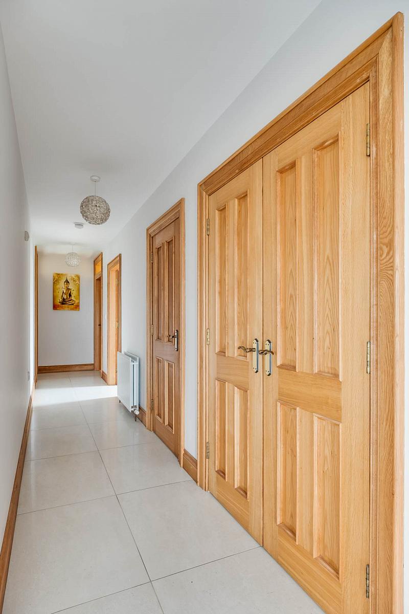 The grounds are attractively laid out and entered via a pillared entrance off the Newtown Road, with a winding avenue that gently adjoins well maintained farmland, creating an impressive approach to the residence. This leads to a spacious parking area and a detached garage, providing excellent practicality. The setting has been thoughtfully preserved, with original hedging and mature trees retained to ensure the grounds blend seamlessly with the surrounding landscape, enhancing both privacy and natural appeal. In addition, the property offers the opportunity to acquire further adjoining land, ideally suited for use as a small paddock if desired.