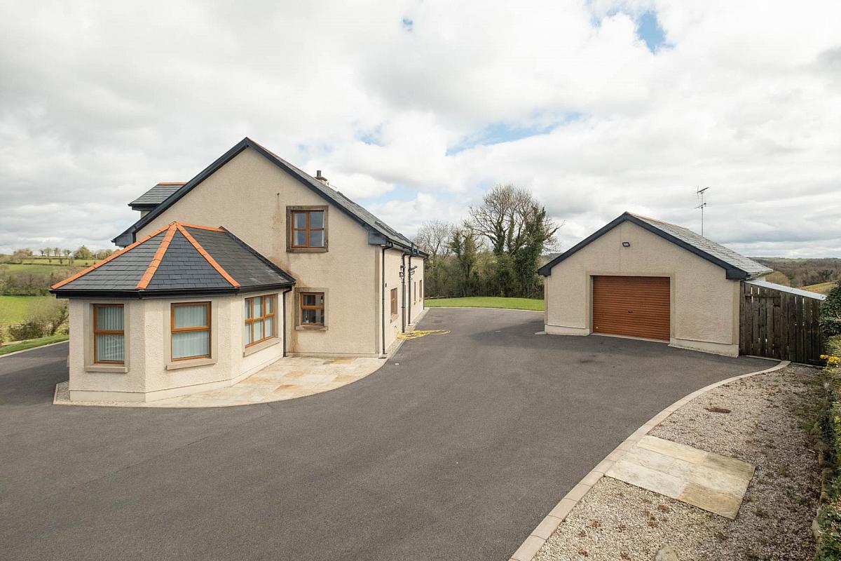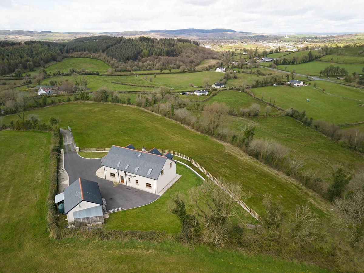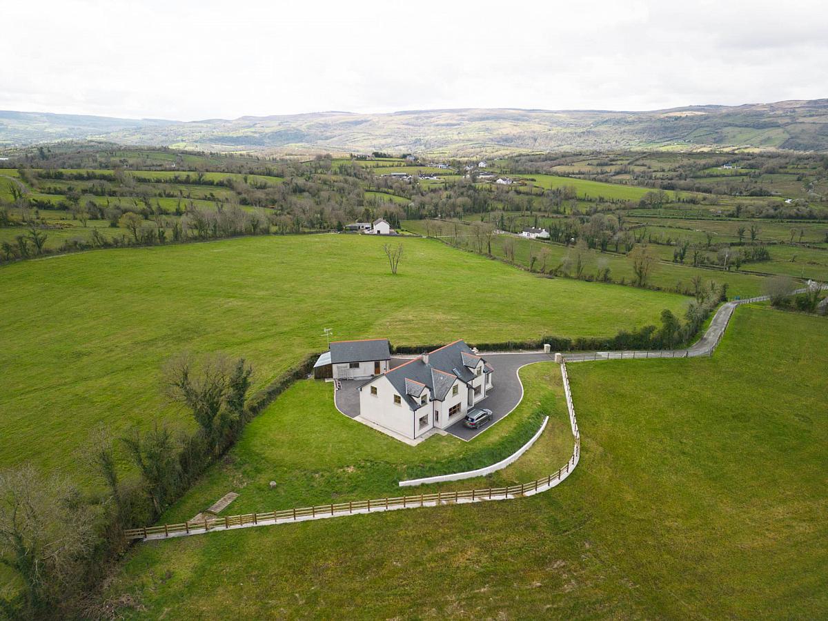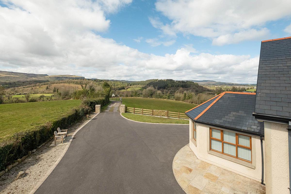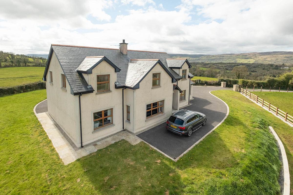 A significant & superb country residence set in a truly unique and elevated position, commanding spectacular and unspoiled views across County Fermanagh's breathtaking countryside, including its iconic mountain landscape. Ideally located just a convenient drive from the village of Derrygonnelly and approximately 15 minutes from Enniskillen, the property sits at the heart of some of the area's most renowned natural attractions. This beautifully designed home has been thoughtfully crafted to complement its exceptional setting, offering a substantial and well balanced range of accommodation. The interior is centred around excellent living space, including 3 reception rooms, and is further enhanced by 5 well proportioned bedrooms, with 2 located on the ground floor, together with a dedicated office ideally suited to modern home working requirements. Externally, the residence is set on a generous site, approached via a winding avenue bordered by well maintained farmland, and includes a detached garage. Altogether, this represents a rare and unique opportunity to acquire a truly special home, offering an enviable country lifestyle in the heart of Fermanagh's natural beauty.
