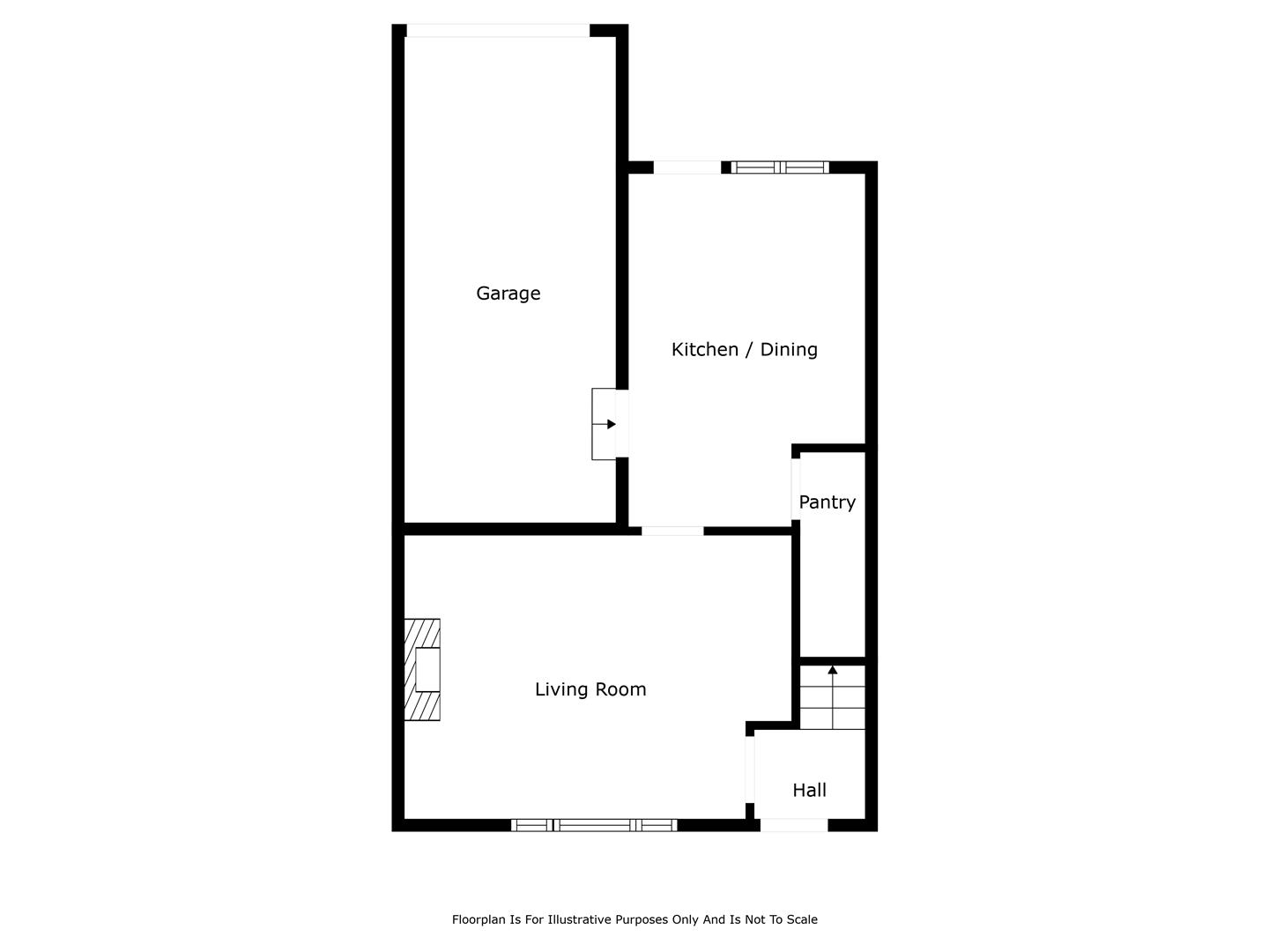 The property comprises entrance hall, lounge with open fire, kitchen with informal dining area, three well-proportioned bedrooms, and bathroom, with white three piece suite.