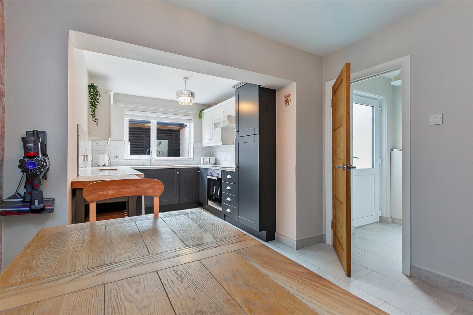 The property comprises entrance hall, lounge, dining room, separate modern fitted kitchen, rear hall, bathroom, and three well-proportioned bedrooms.