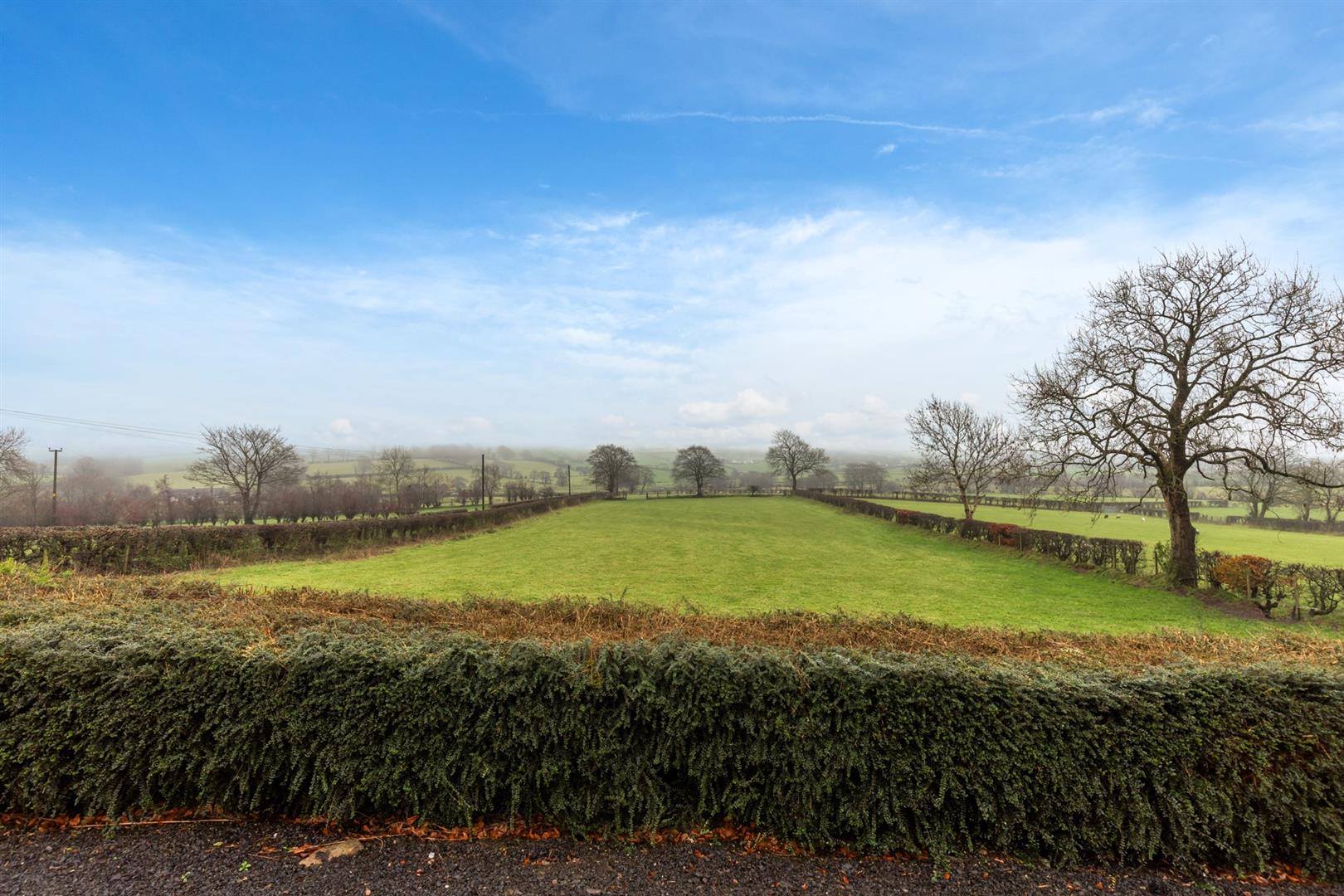 Well presented, three bedroom, detached bungalow with matching detached garage, occupying a prime site enjoying elevated rural views, located off the Ballymena Road, Doagh.