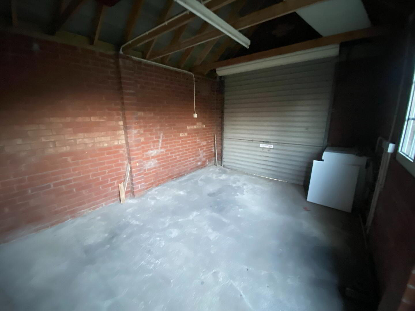 4.88m x 3.25m (16' 0" x 10' 8") Brick built detached garage with white uPVC window, roller shutter door, boiler housing, light & power.