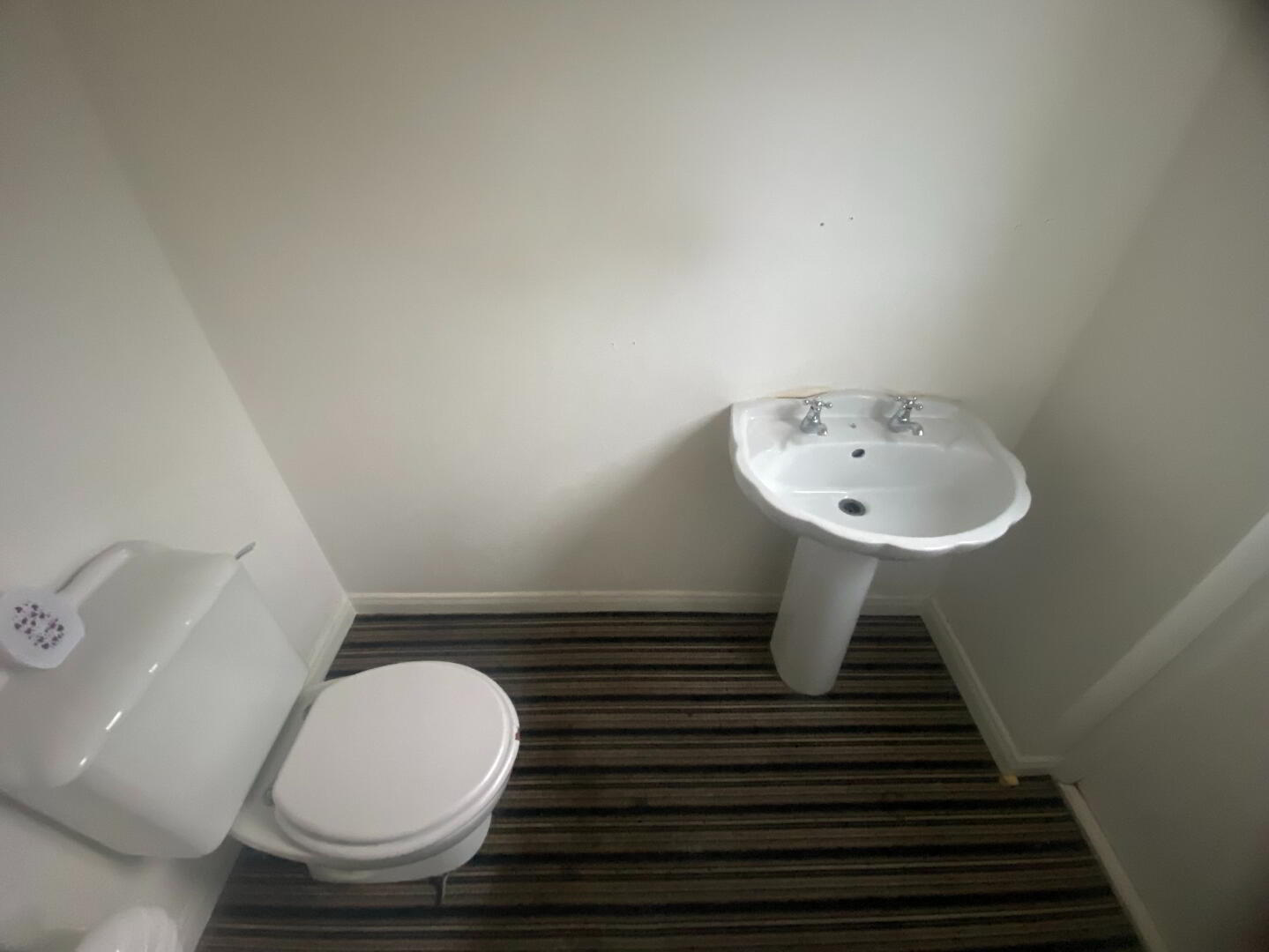 1.92m x 3.0m (6' 4" x 9' 10") 2 piece white suite comprising, low flush WC, pedestal wash hand basin, single panel radiator.