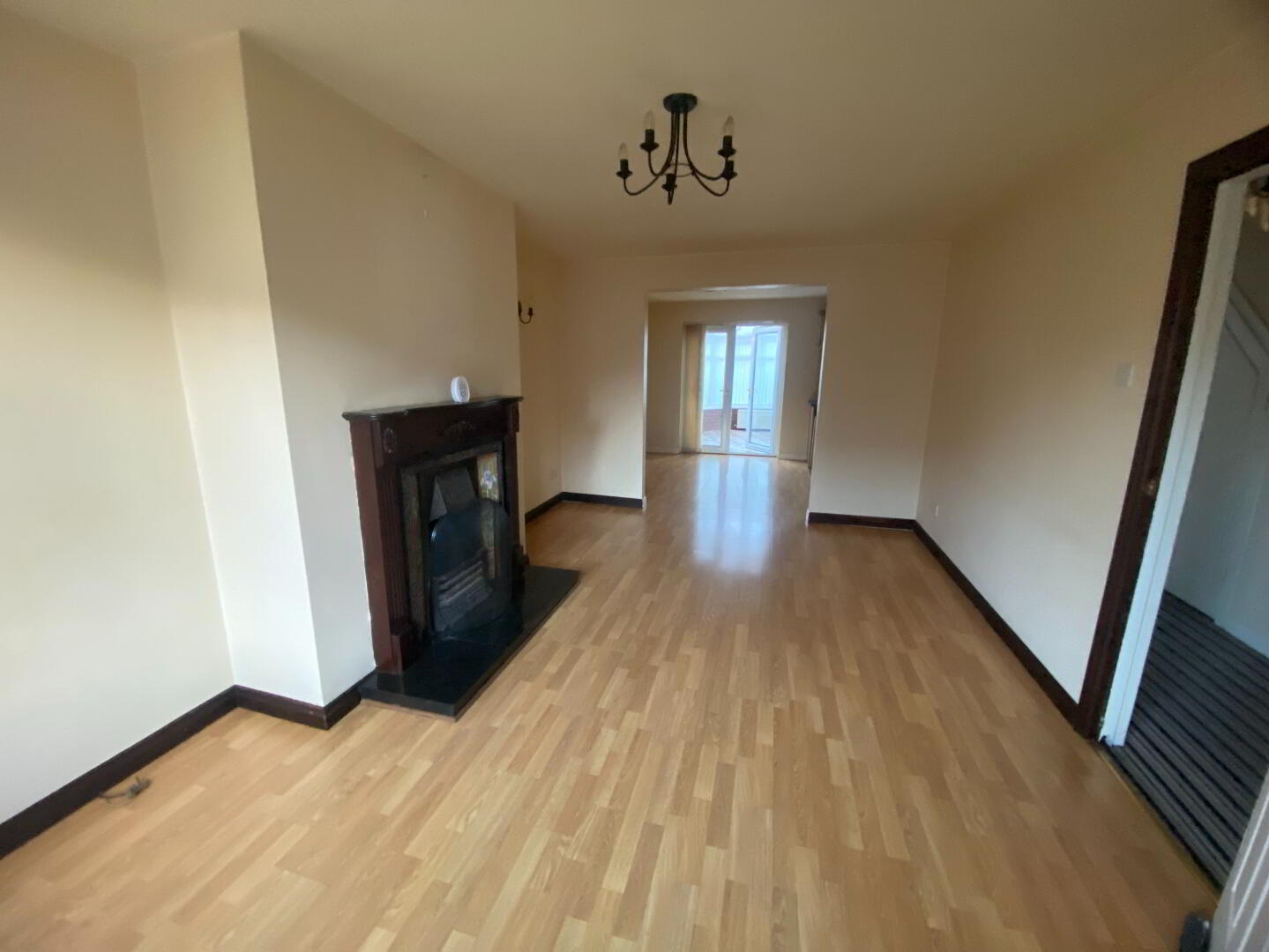 5.21m x 3.31m (17' 1" x 10' 10") Wood laminate flooring, double panel radiator, fire place with granite hearth, tiled inset & Mahogany surround & mantle, wall lights, TV point, archway to dining area.