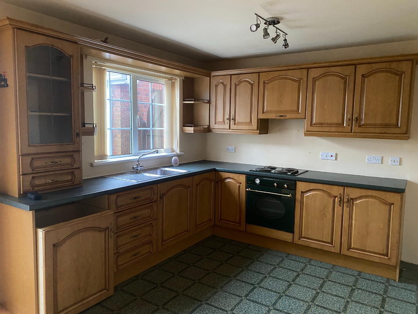2.93m x 3.26m (9' 7" x 10' 8") Kitchen with range of high & low level units with glazed display units, stainless steel sink unit with mixer tap, integrated hob & oven with extractor fan over, space for fridge freezer.