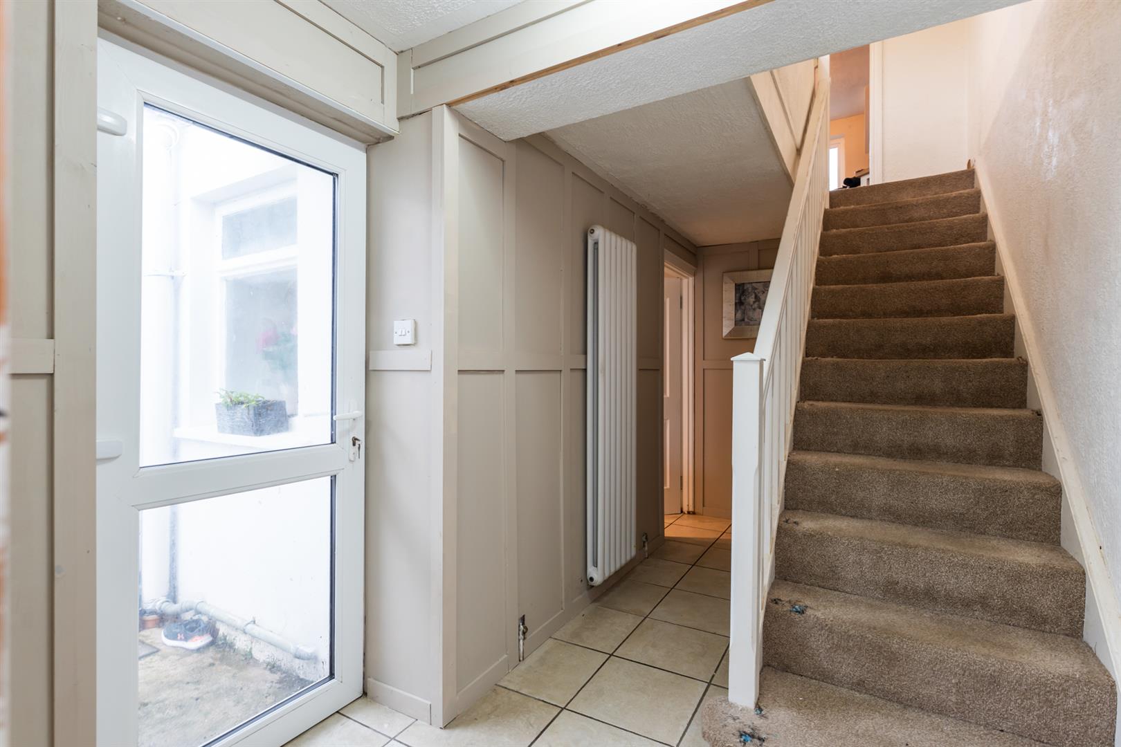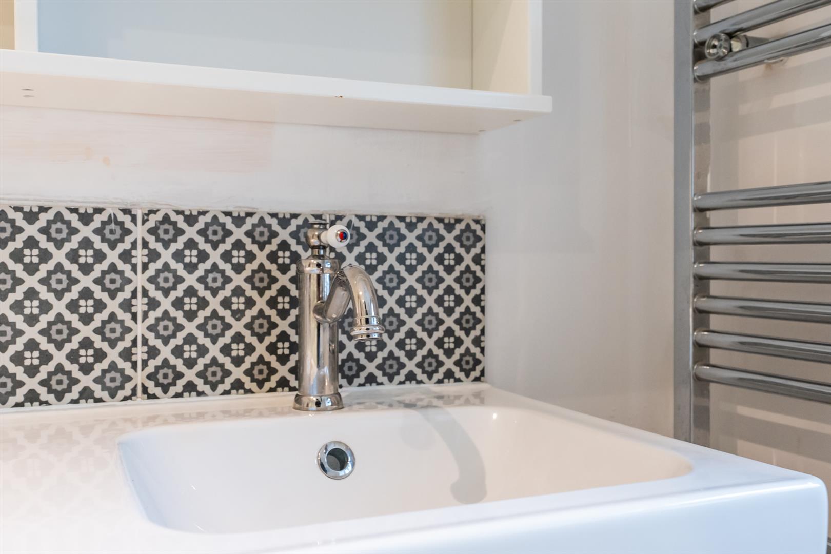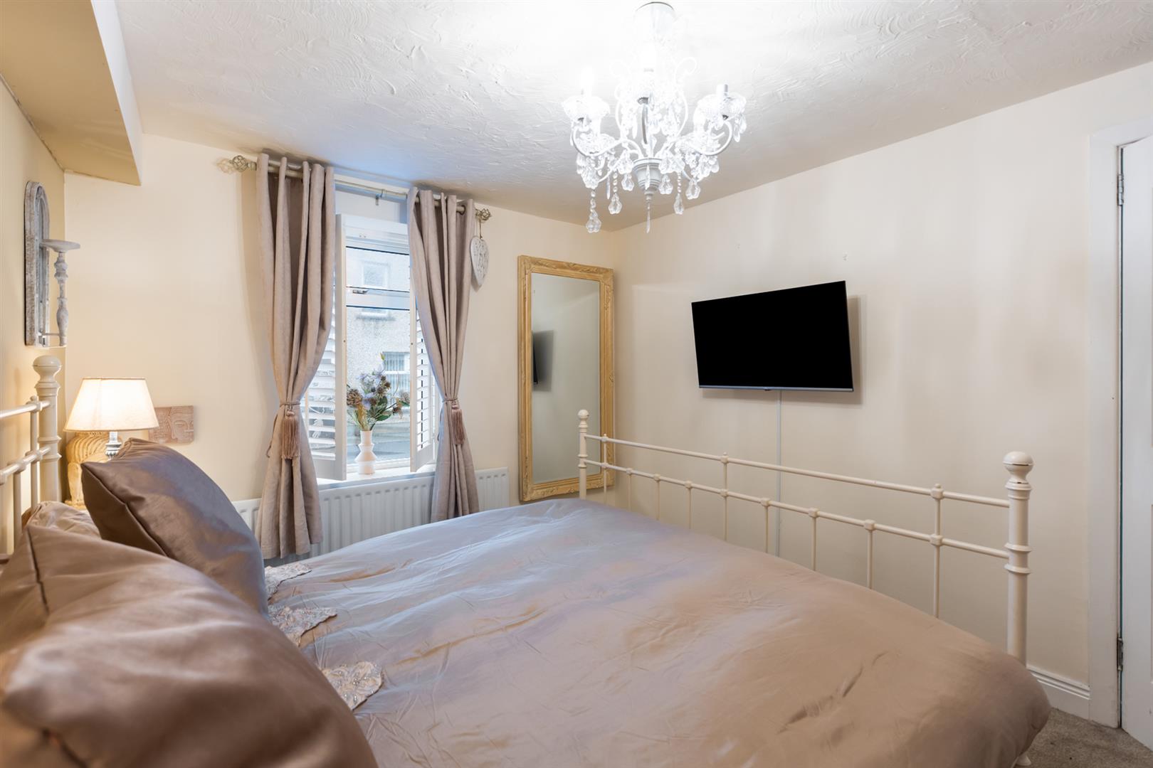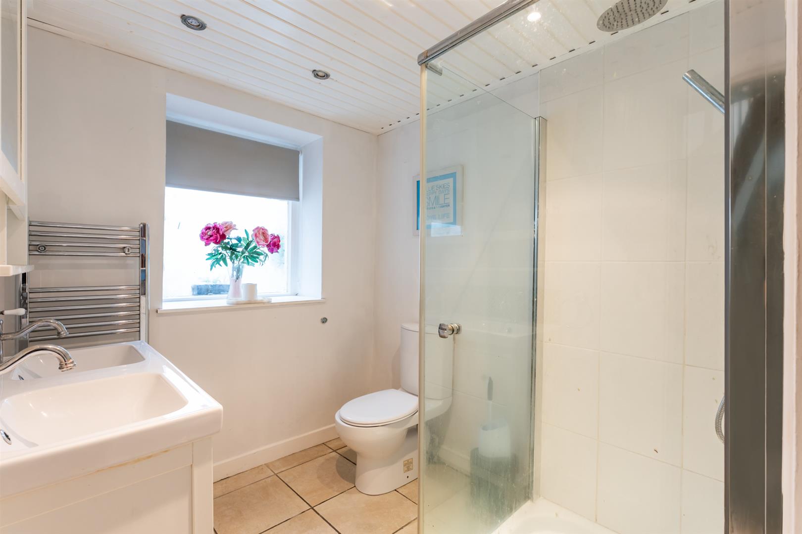 The ground floor offers two well-proportioned bedrooms, one of which includes built-in storage, housing the gas-fired boiler and a modern shower room.