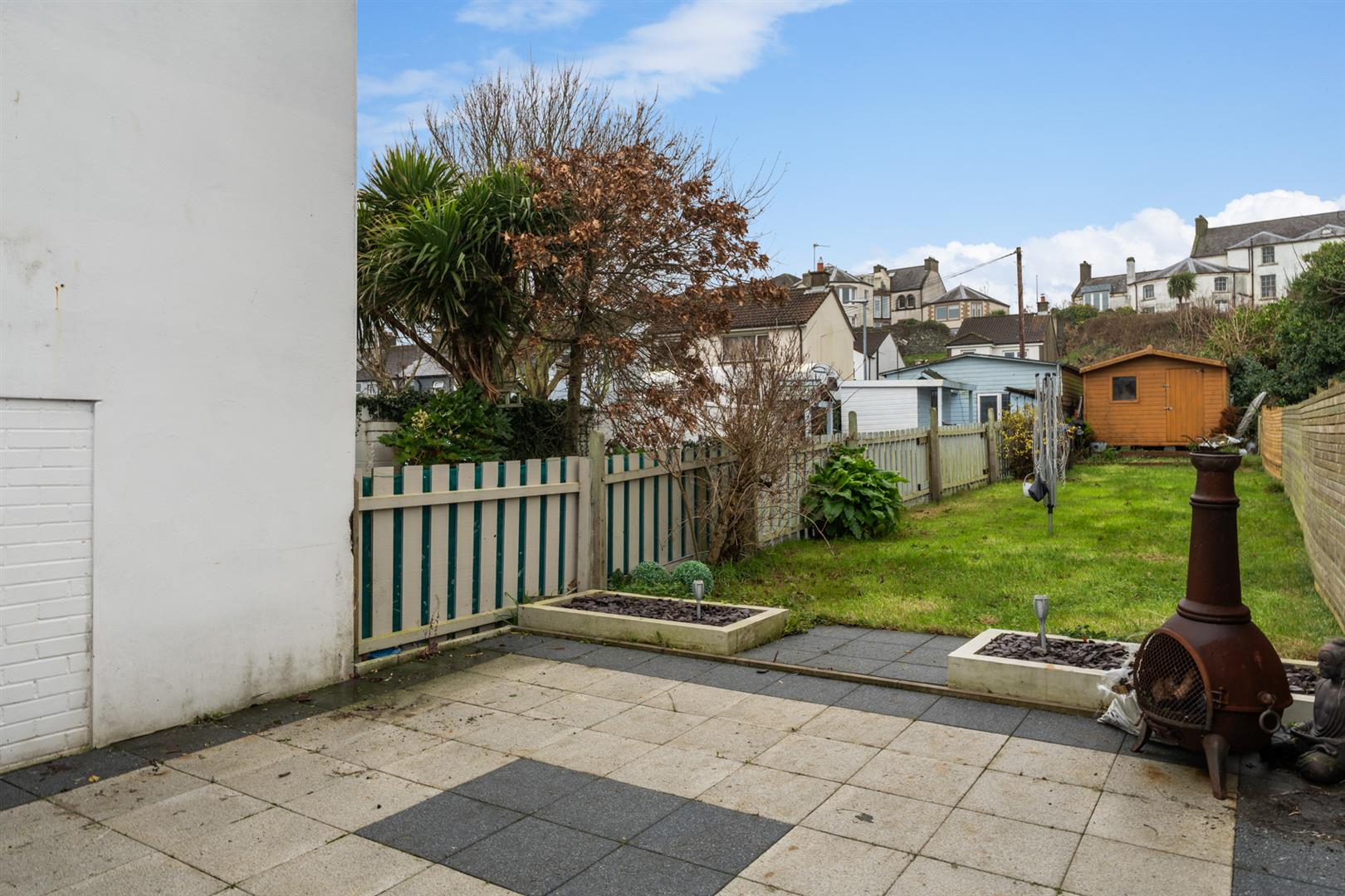 Large Southwest Facing Rear Garden With Patio And Lawn, Garden Shed With A Ready Made Bar For Entertaining.