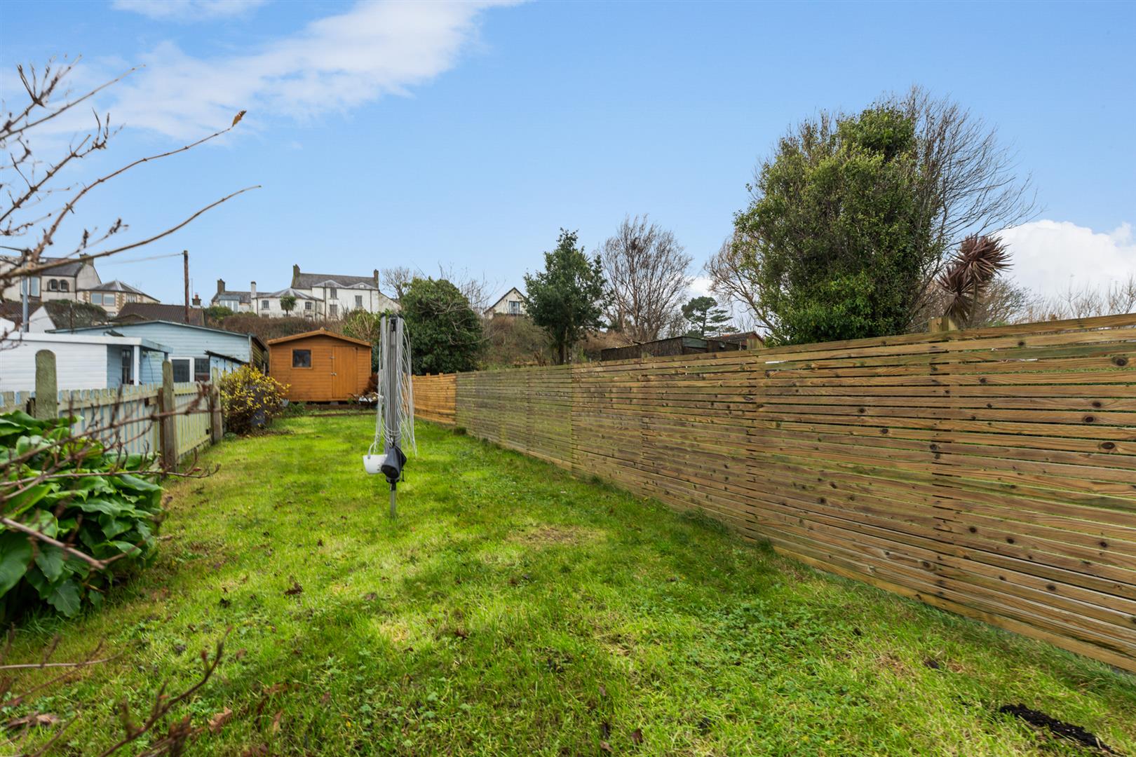 Large enclosed south west facing garden with patio area leading to a good sized lawn, garden shed with ready made bar, boundary fence.