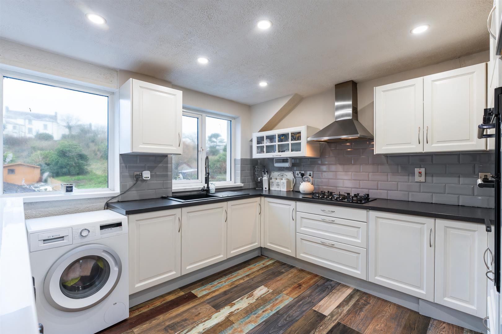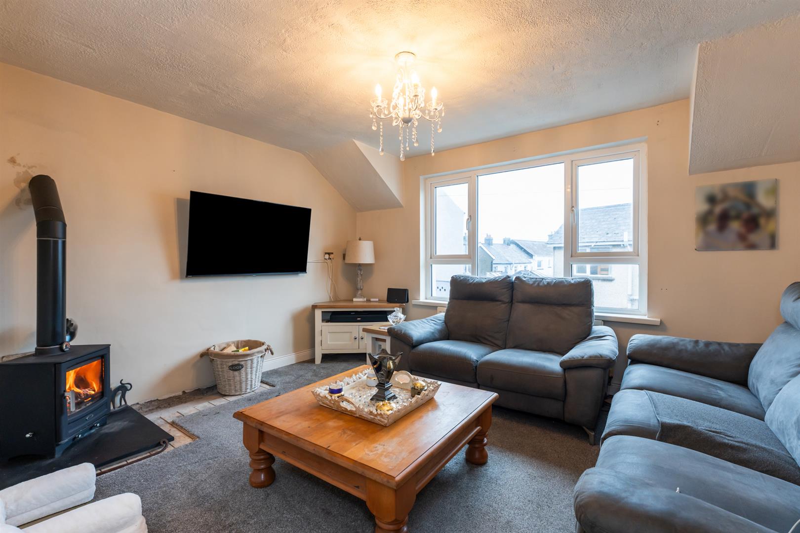 On the first floor, the landing opens directly into the modern fitted kitchen, The lounge sits off the kitchen and features a new wood-burning stove on a slate-tiled hearth.