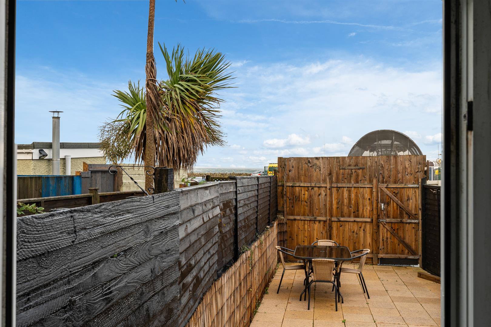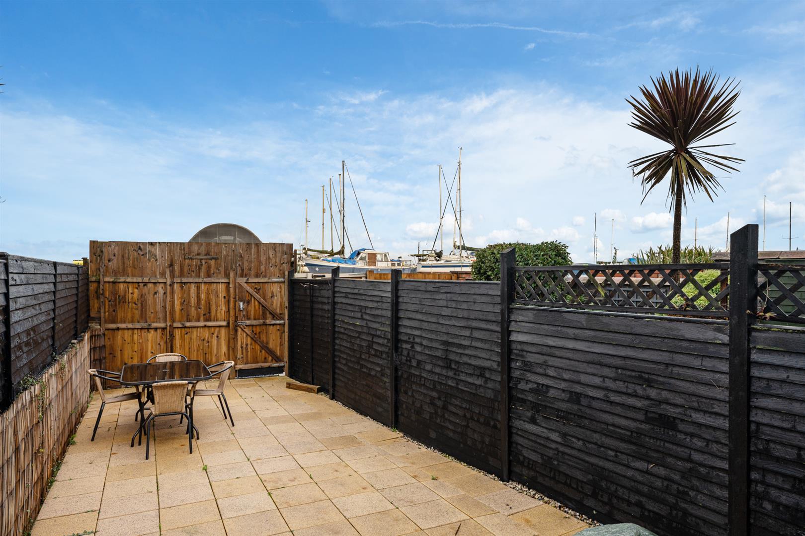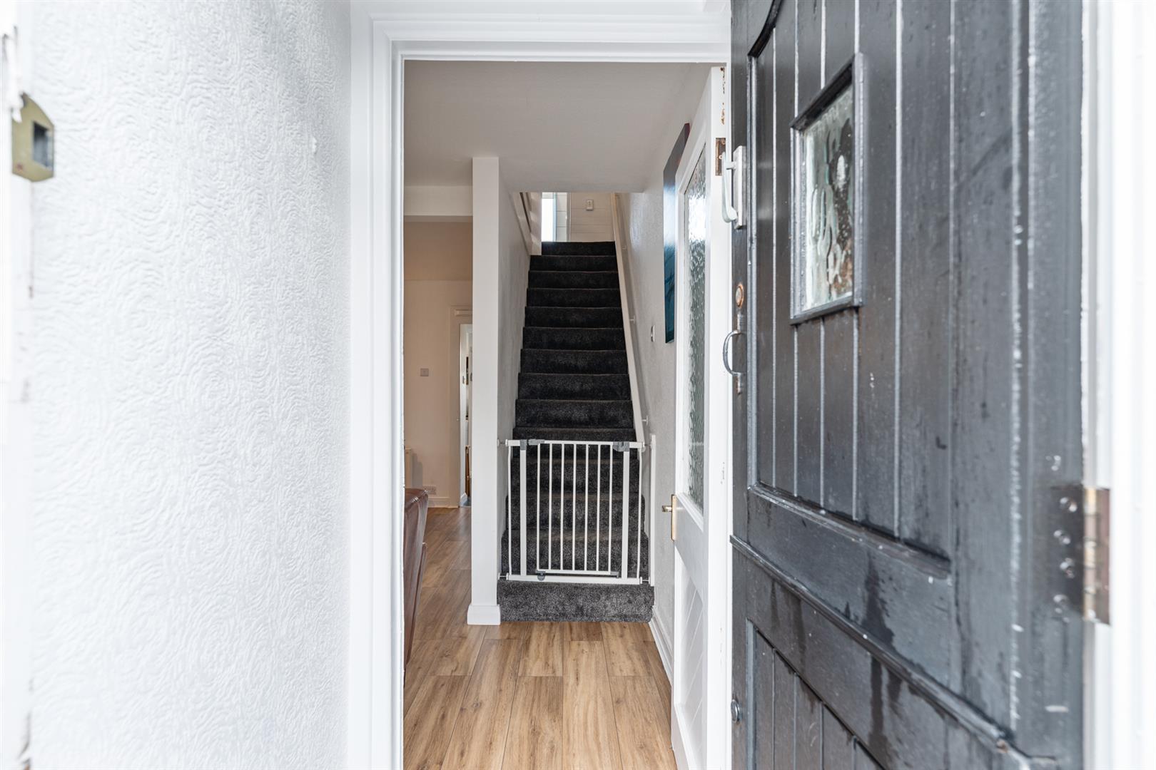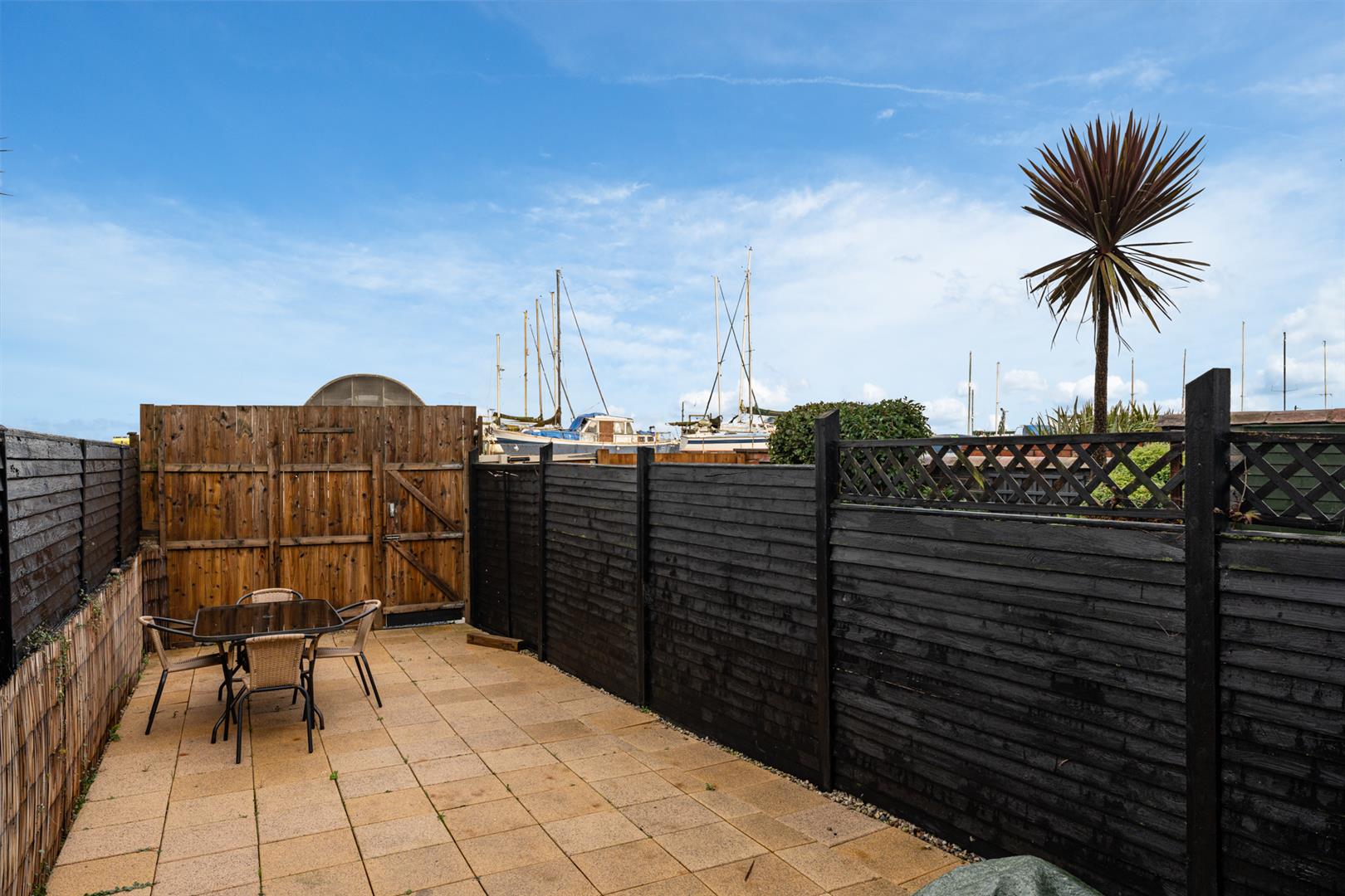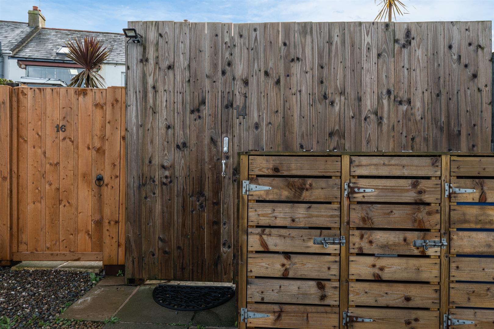 Rear - Fully enclosed, area fully paved, outside tap and light, rear gate for bin access and direct access onto the Commons car park.