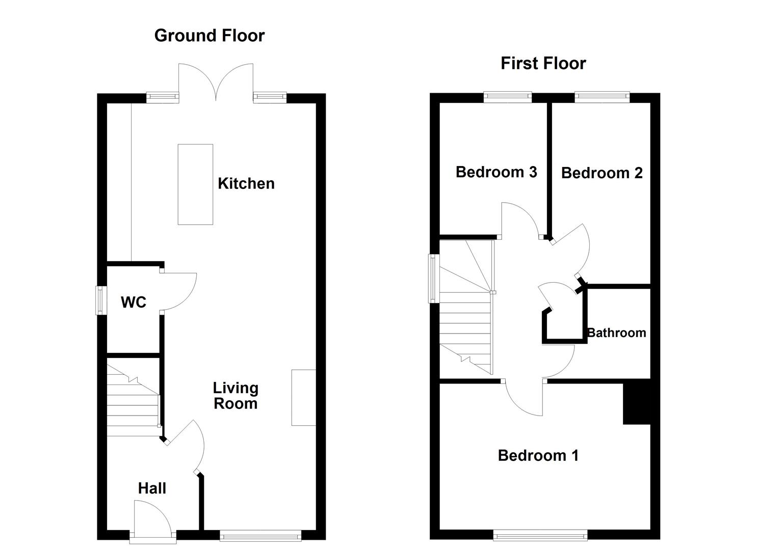 Front: Area in lawn, tarmac drive with space for two vehicles, paved walkway to front door.