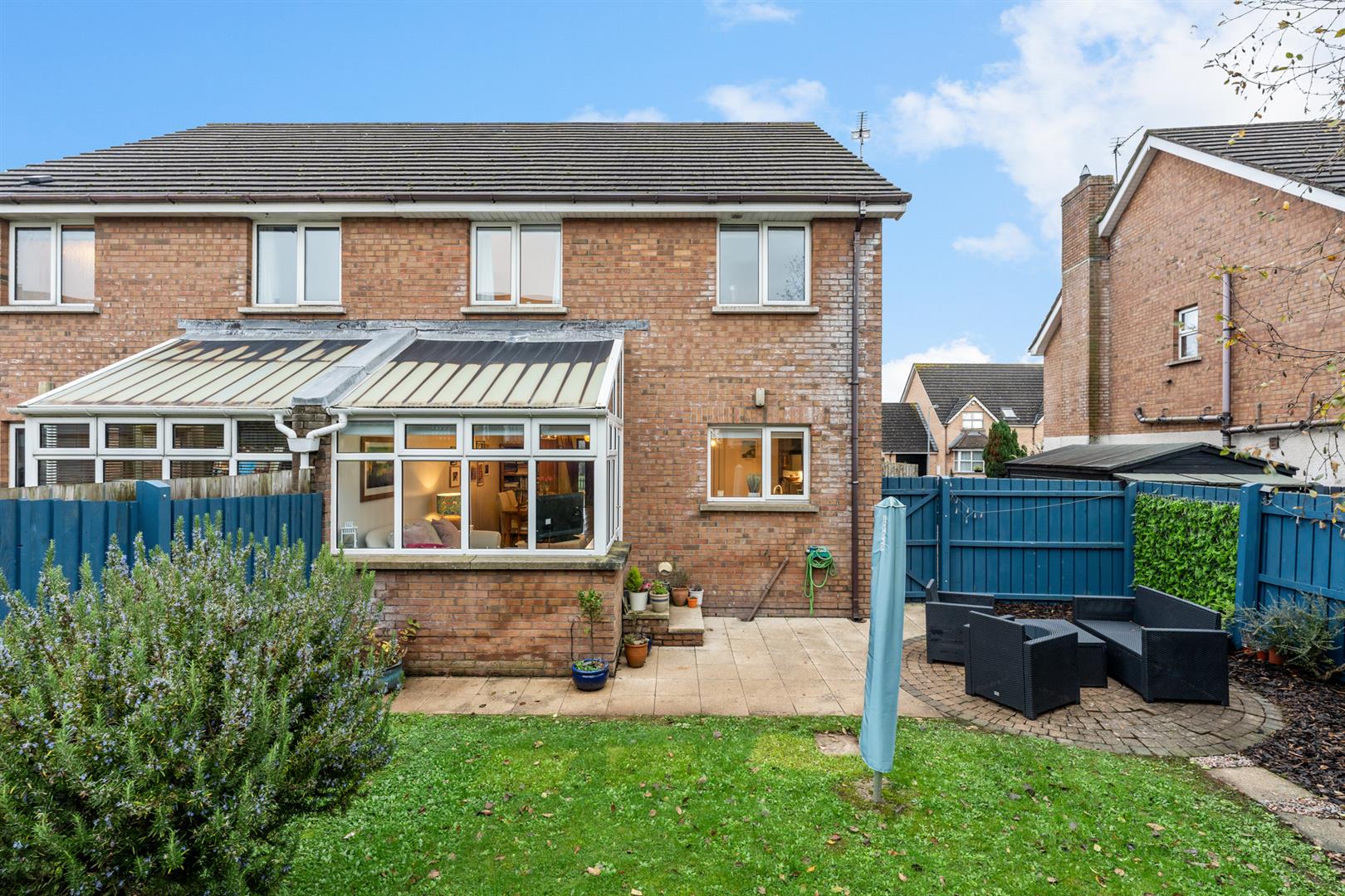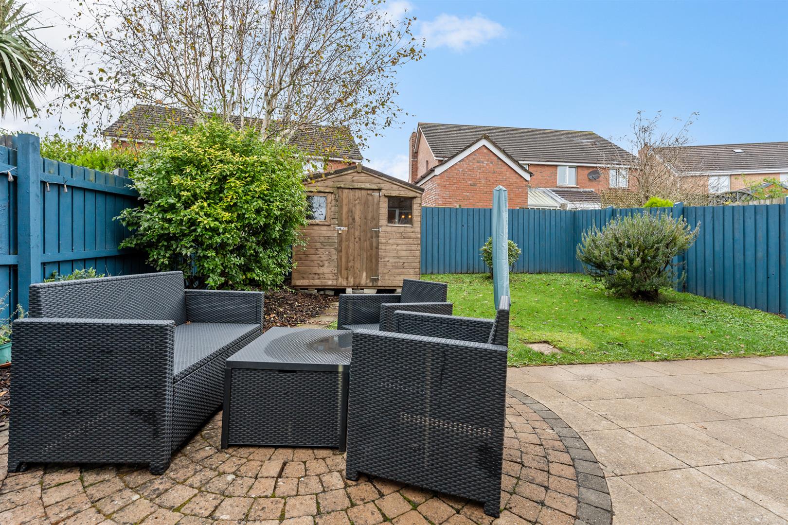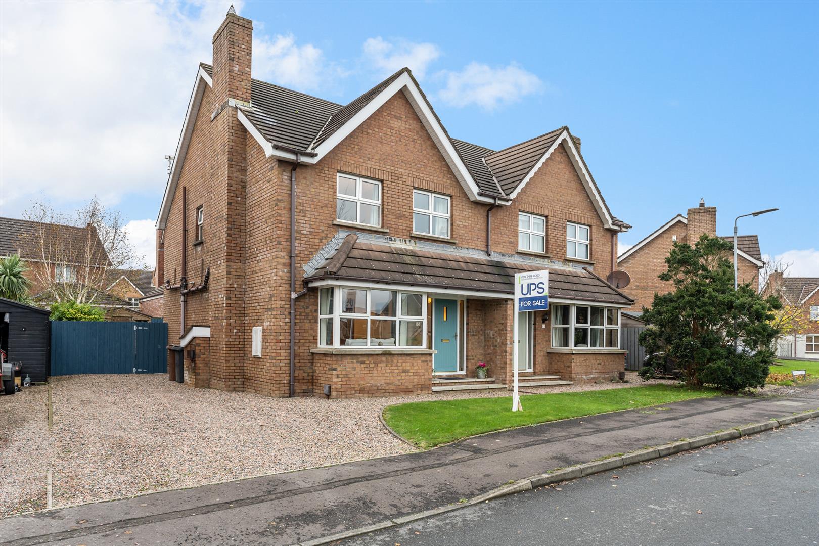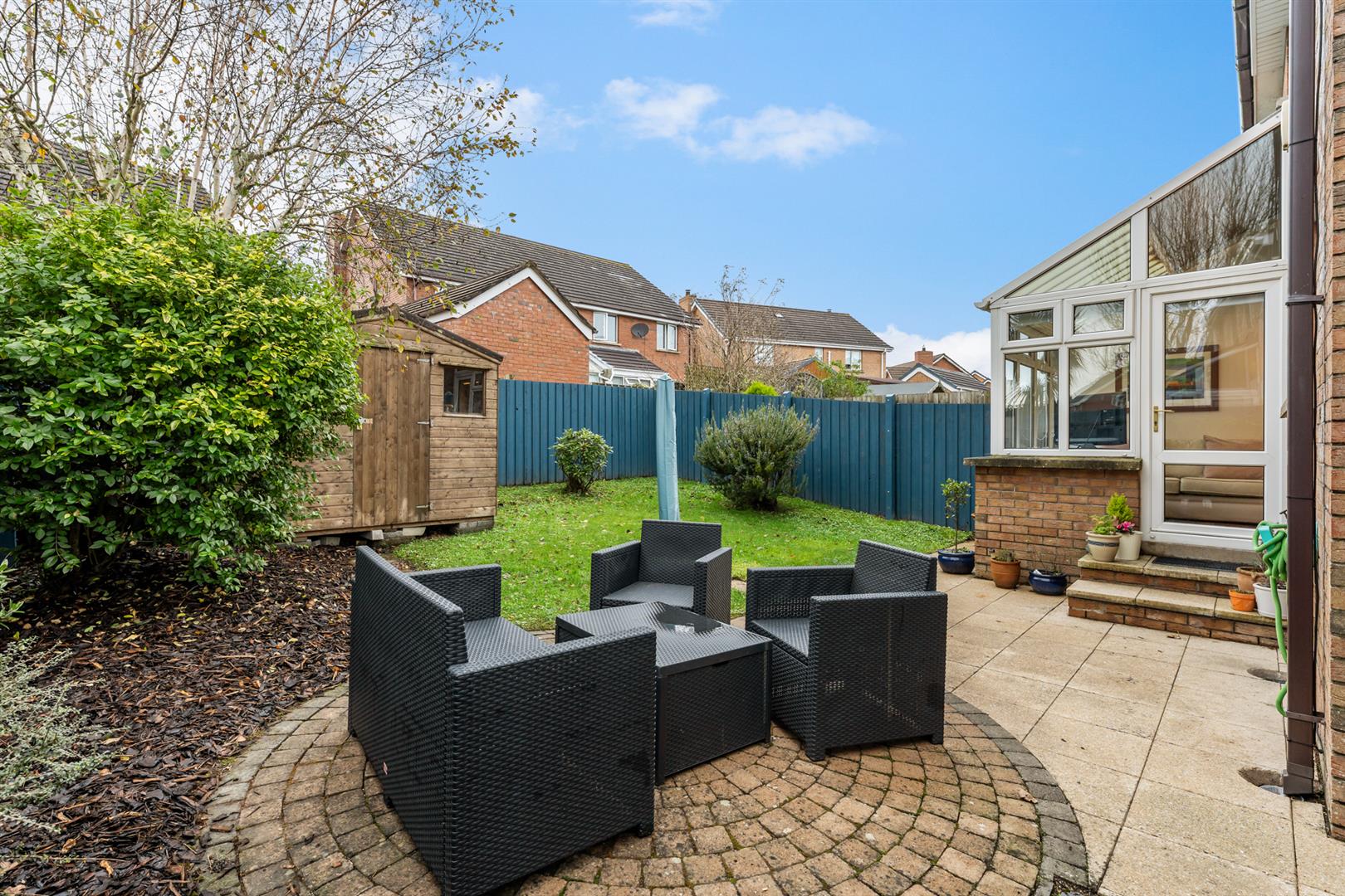 Outside, the front garden includes a lawn and a generous decorative-stone driveway. The enclosed west-facing rear garden has a lawn, patio area, flowerbed with wood chip, garden shed and boiler house with oil-fired boiler and oil tank. This is a solid, well-finished home ready for immediate enjoyment.