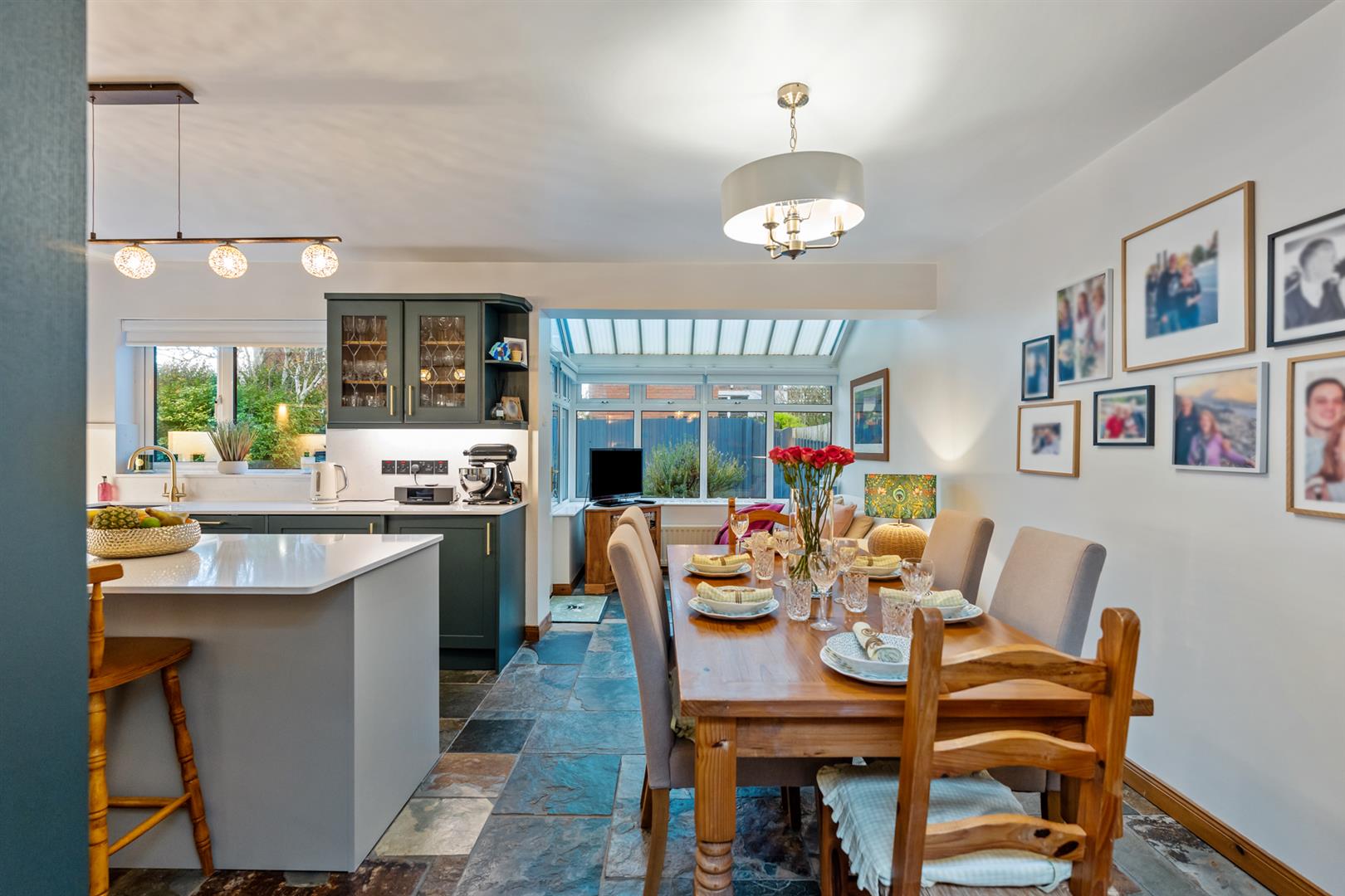 Dining Area Open To Conservatory With Chinese Slate Flooring