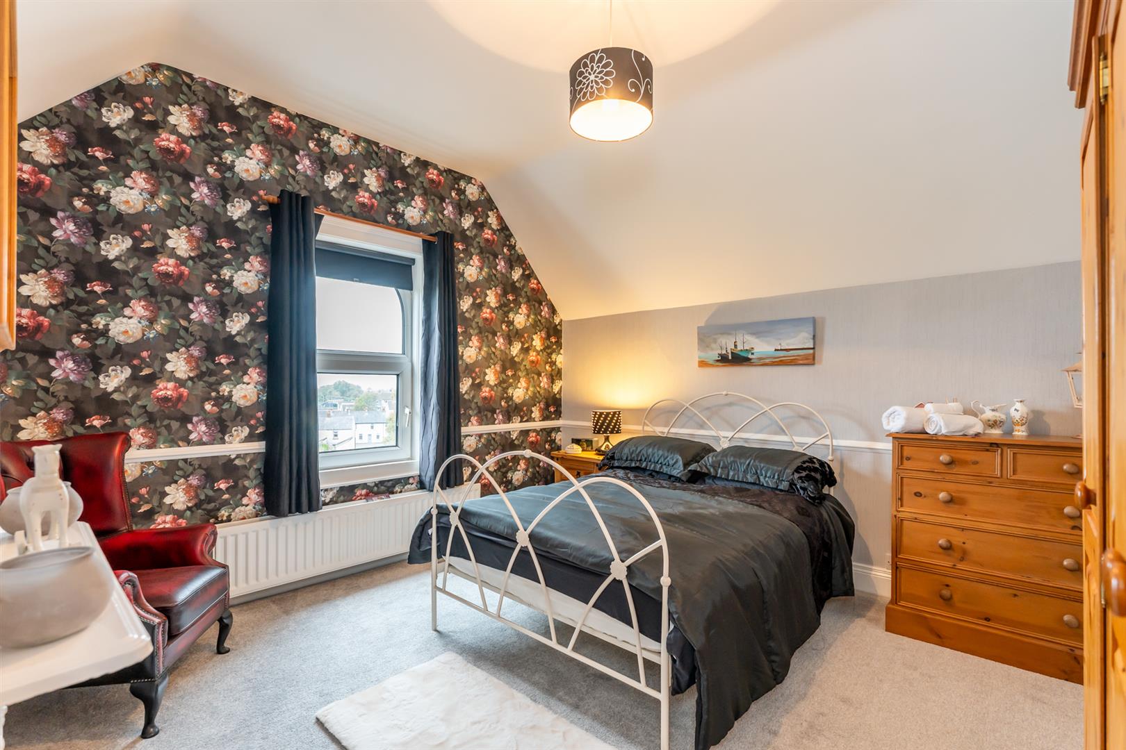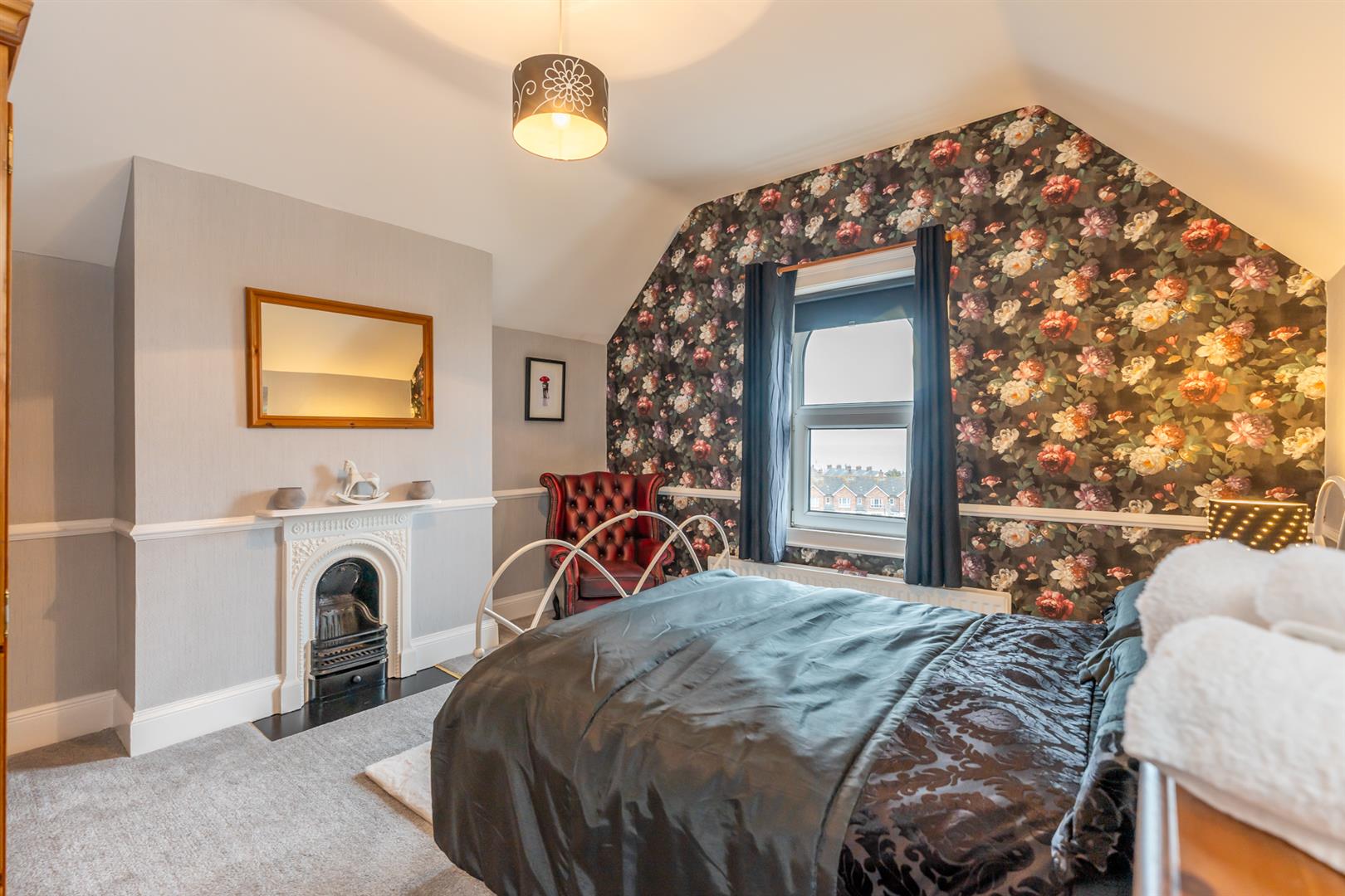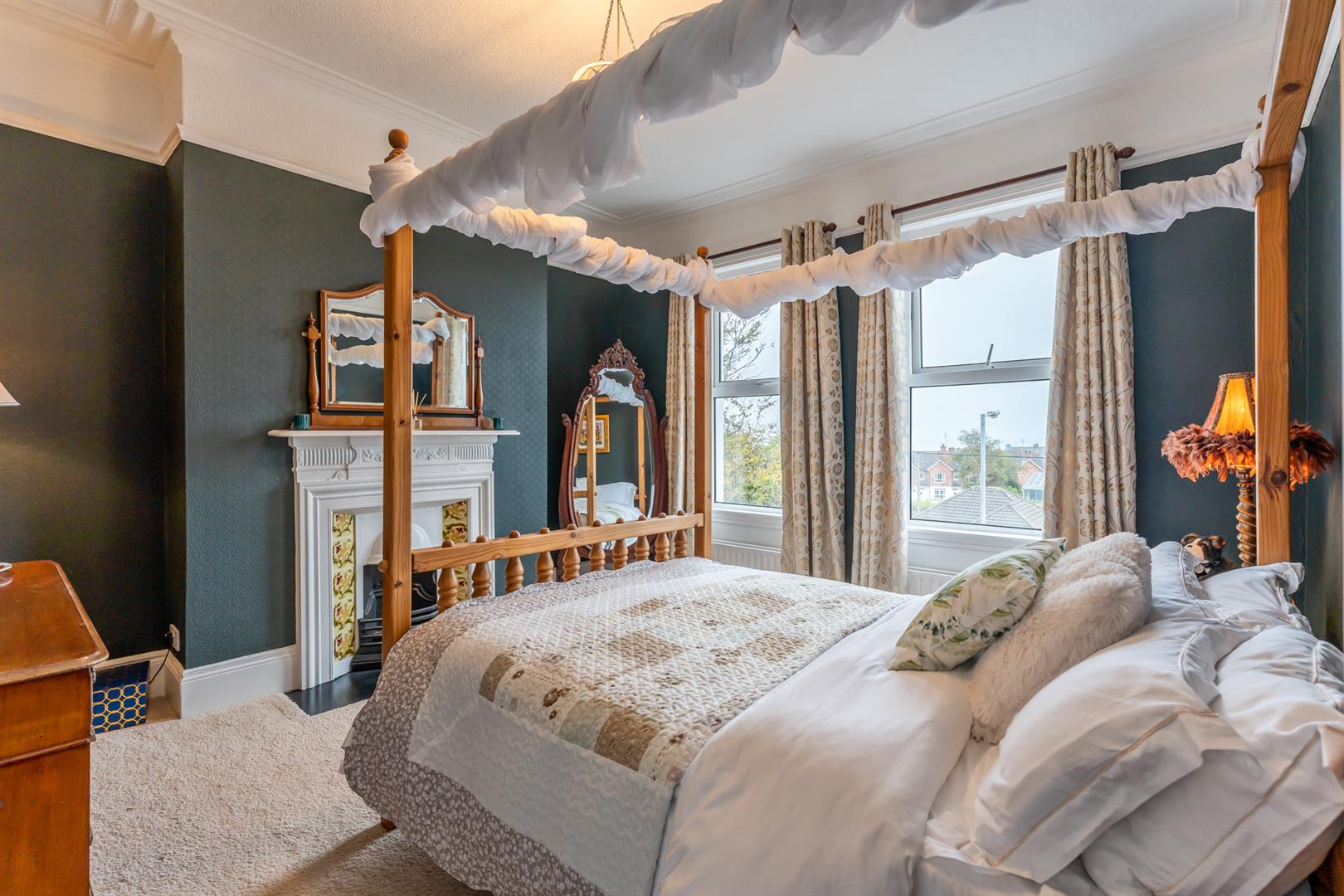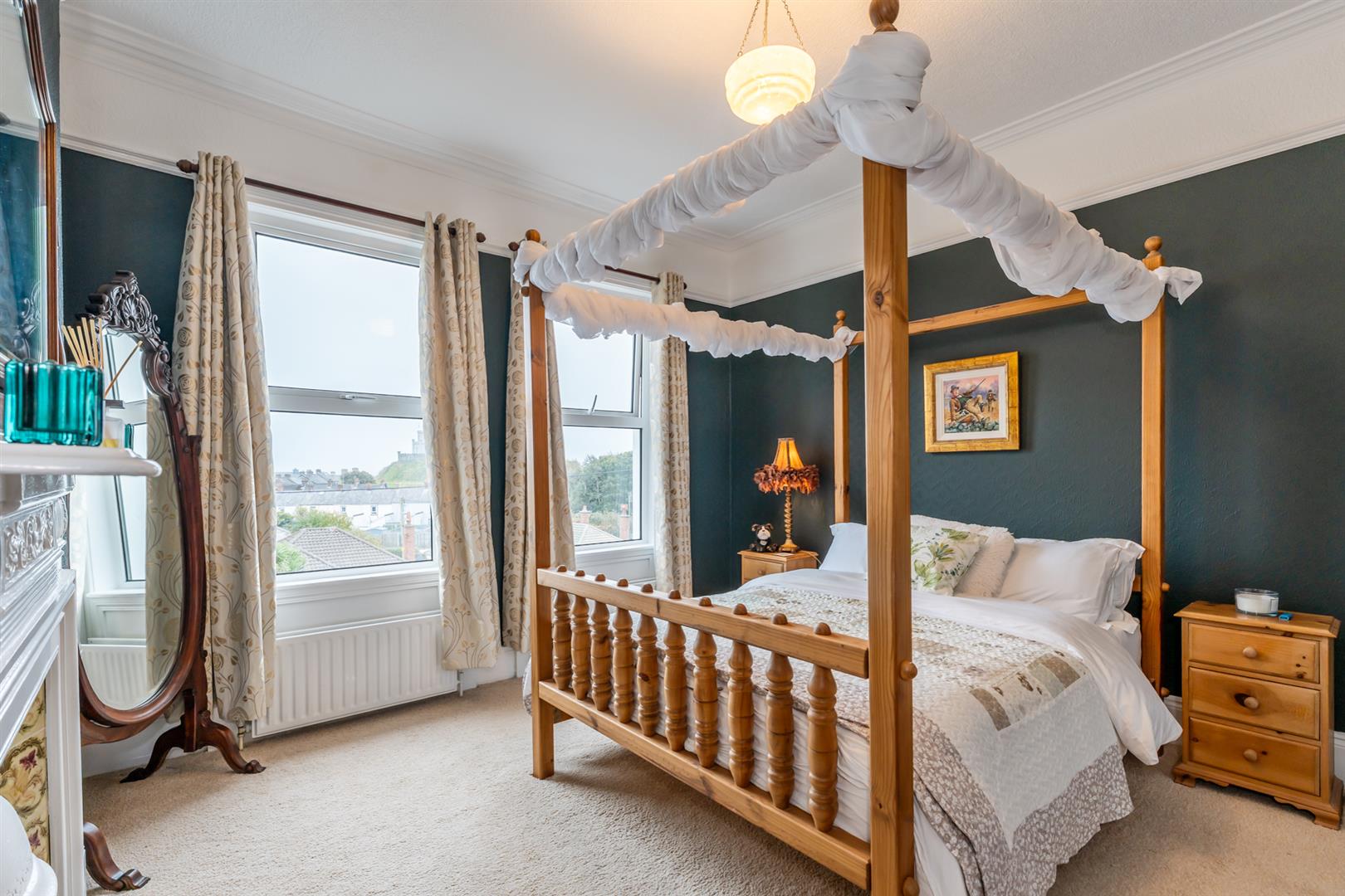 Double room, feature fireplace, picture rail, corniced ceiling, sea views, Moat views.