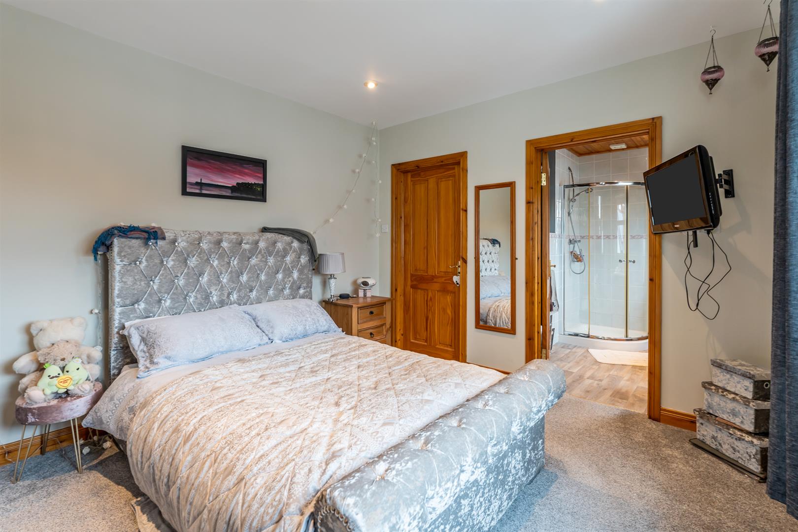 Double room, ensuite shower room, walk in wardrobe, recessed spotlighting.