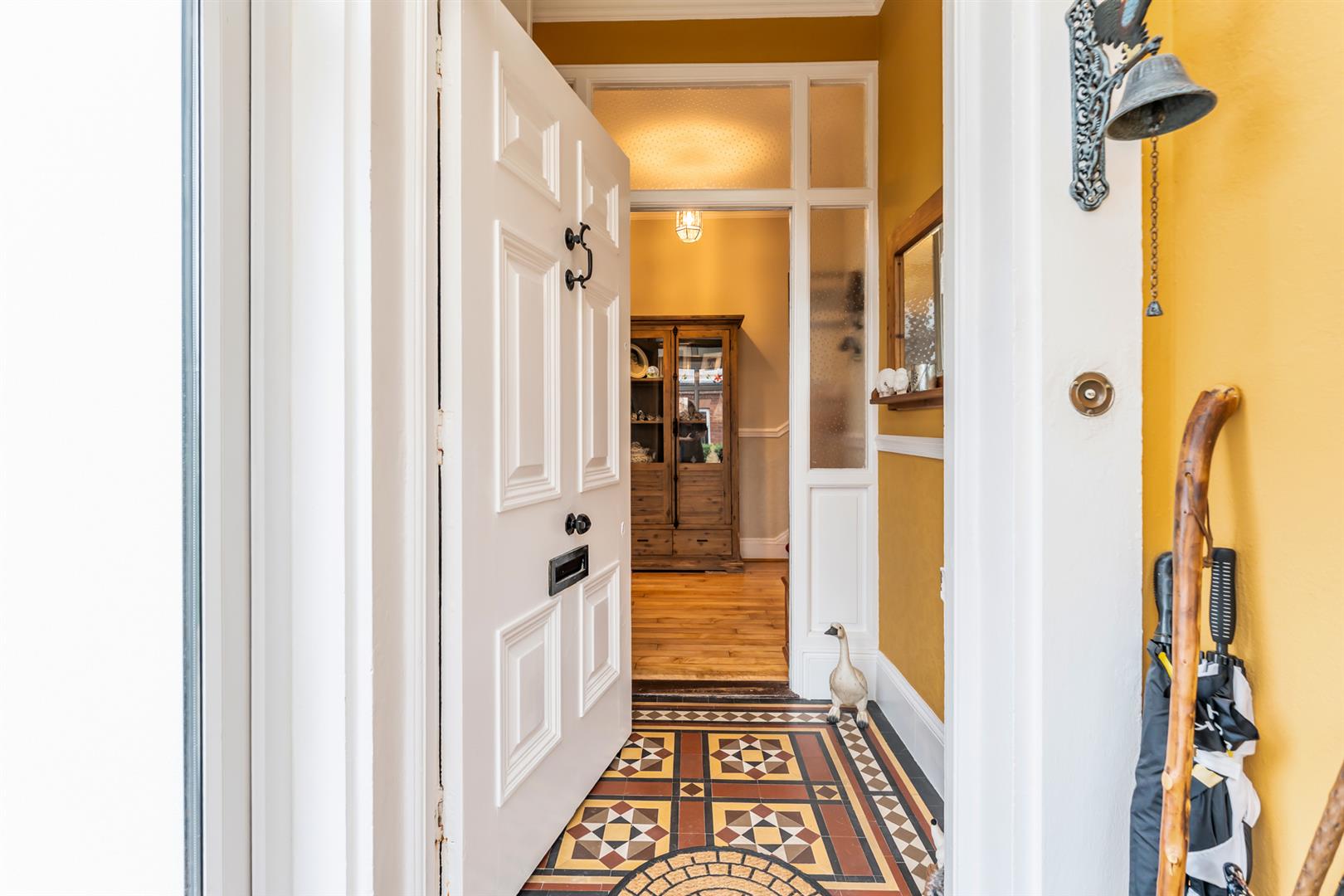 Tiled flooring, corniced ceiling, glazed door to: