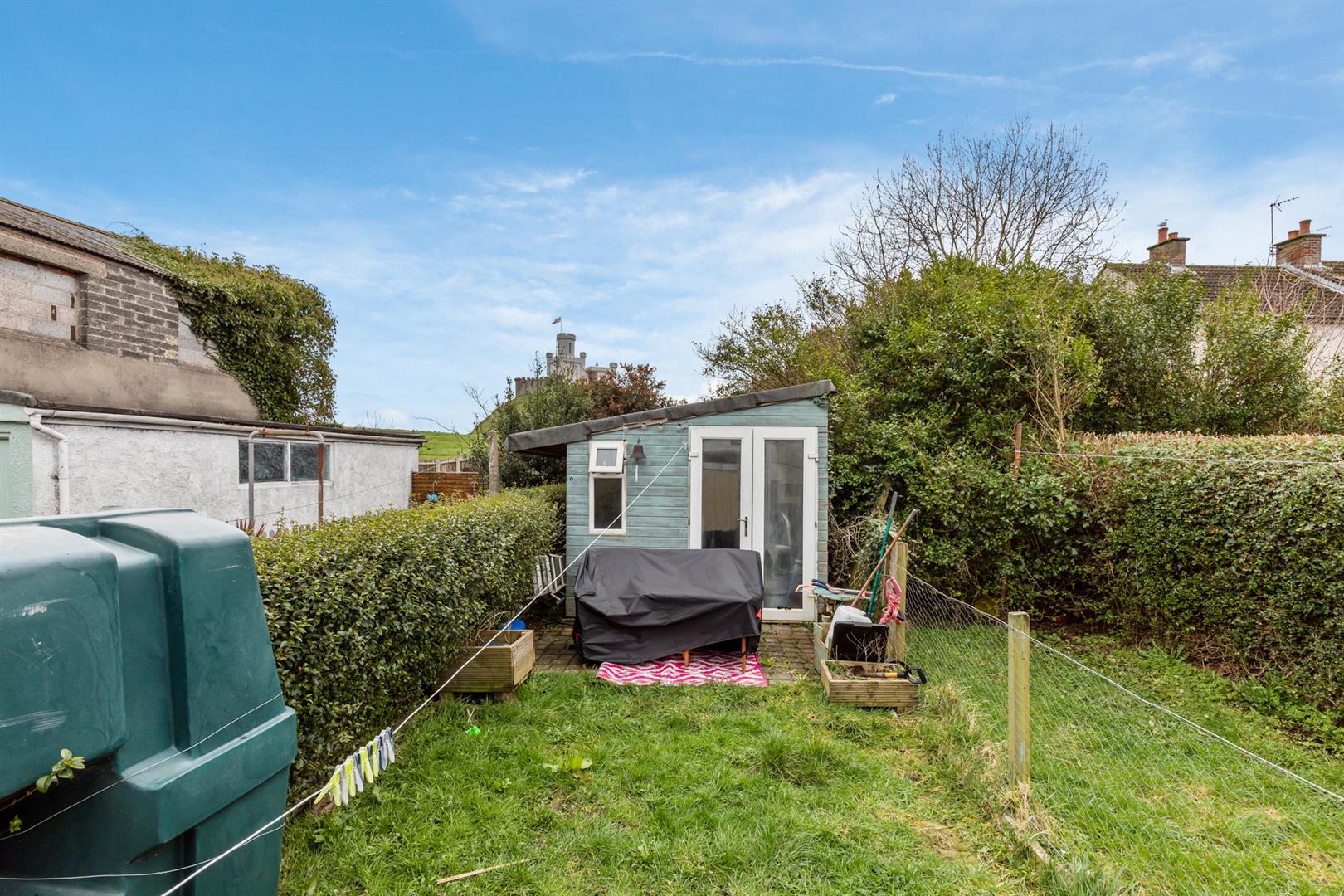 Enclosed rear garden, outhouse plumbed for appliances and space for storage