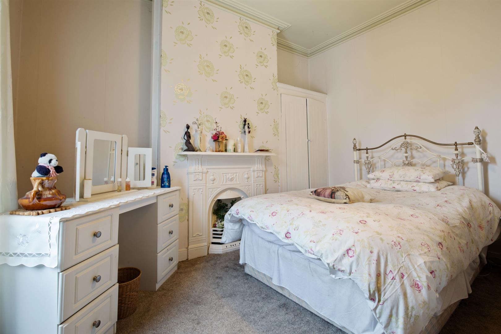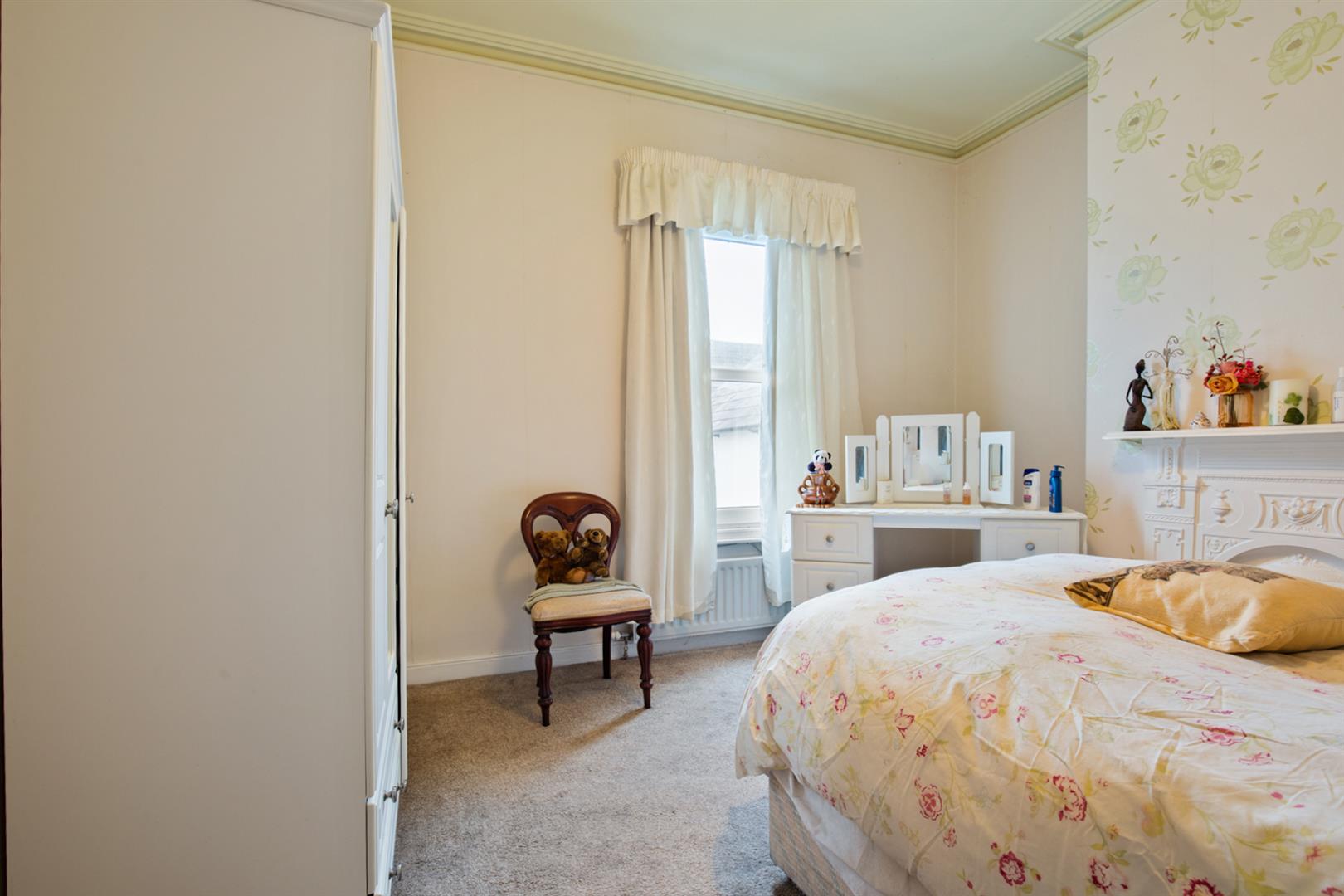 Double room, built in robe, feature cast iron fireplace, corniced ceiling.