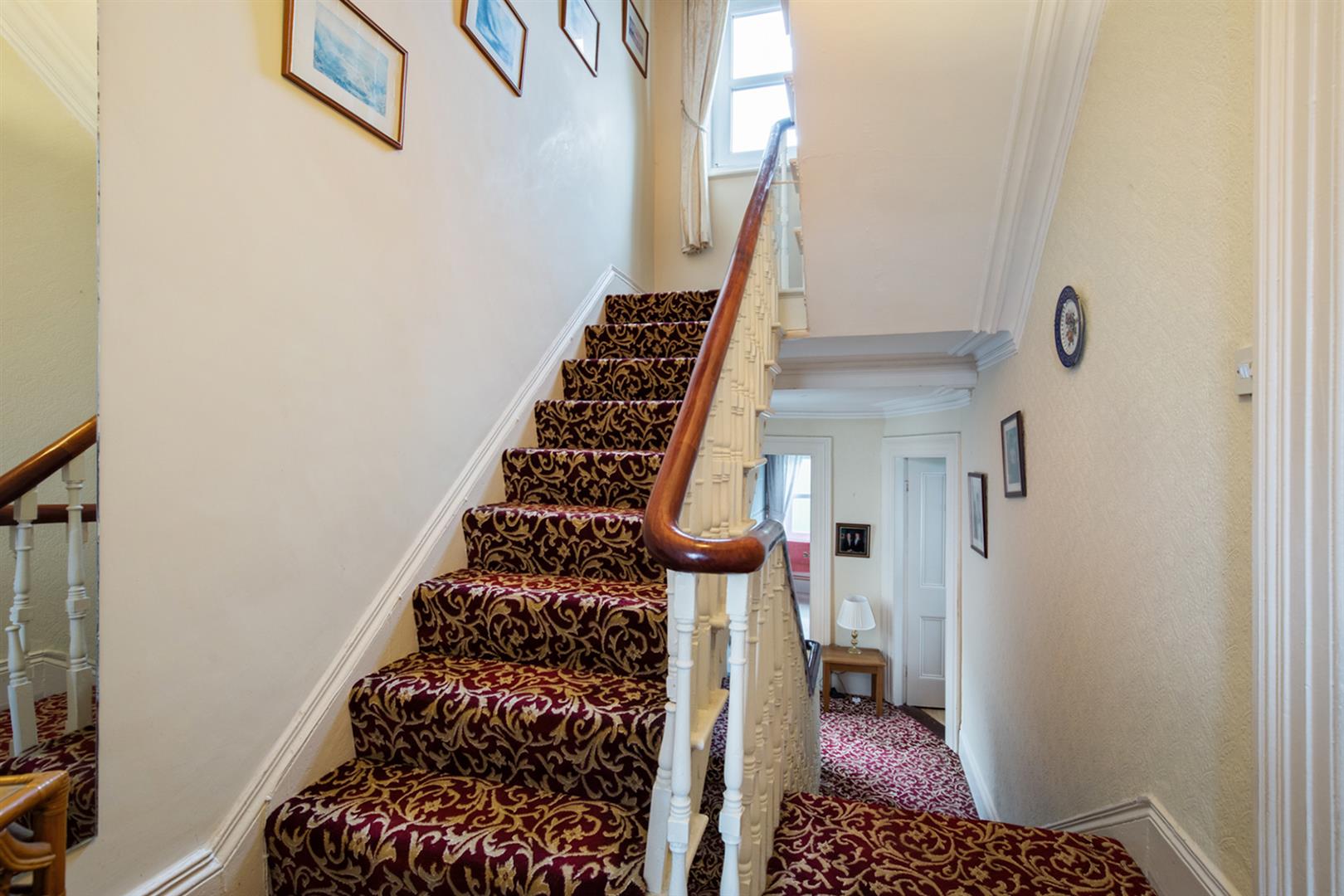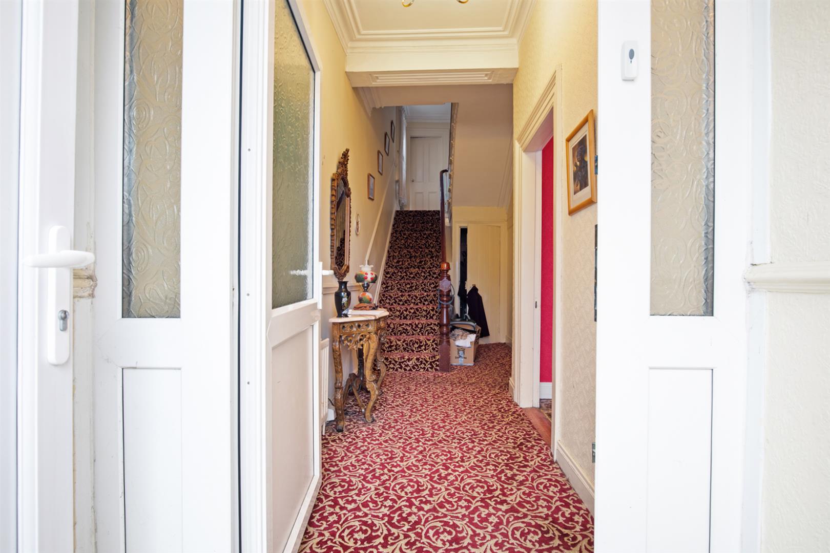 Under stair storage, cloakroom, dado rail, corniced ceiling.