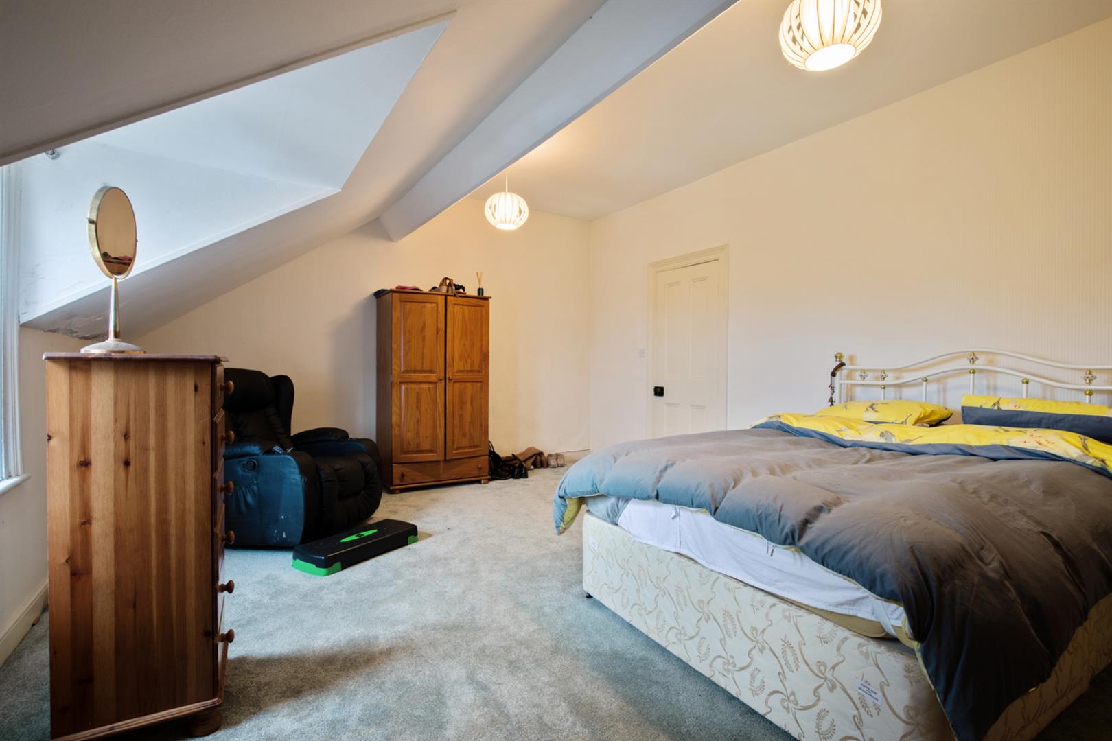 Velux style window, feature cast iron fireplace.
