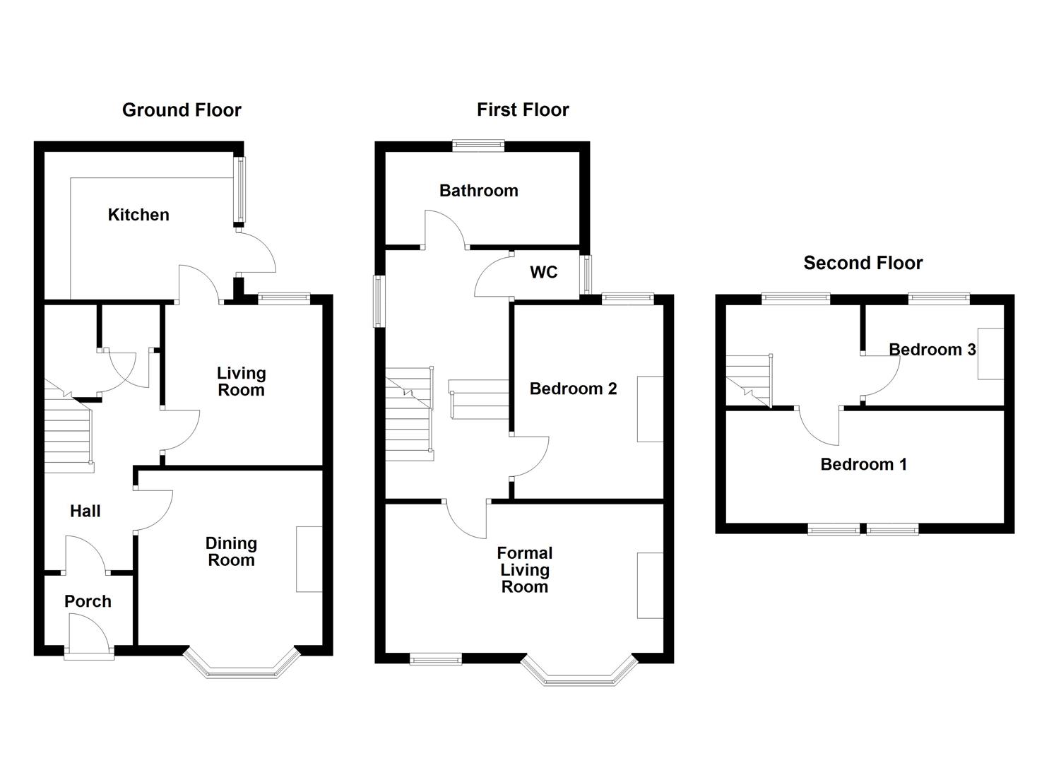 The property comprises three generously sized bedrooms, each with its own unique charm. Two of the bedrooms feature attractive fireplaces, adding to the home's character, while the family bathroom is fitted with a classic white suite and a separate WC, ensuring convenience for all.