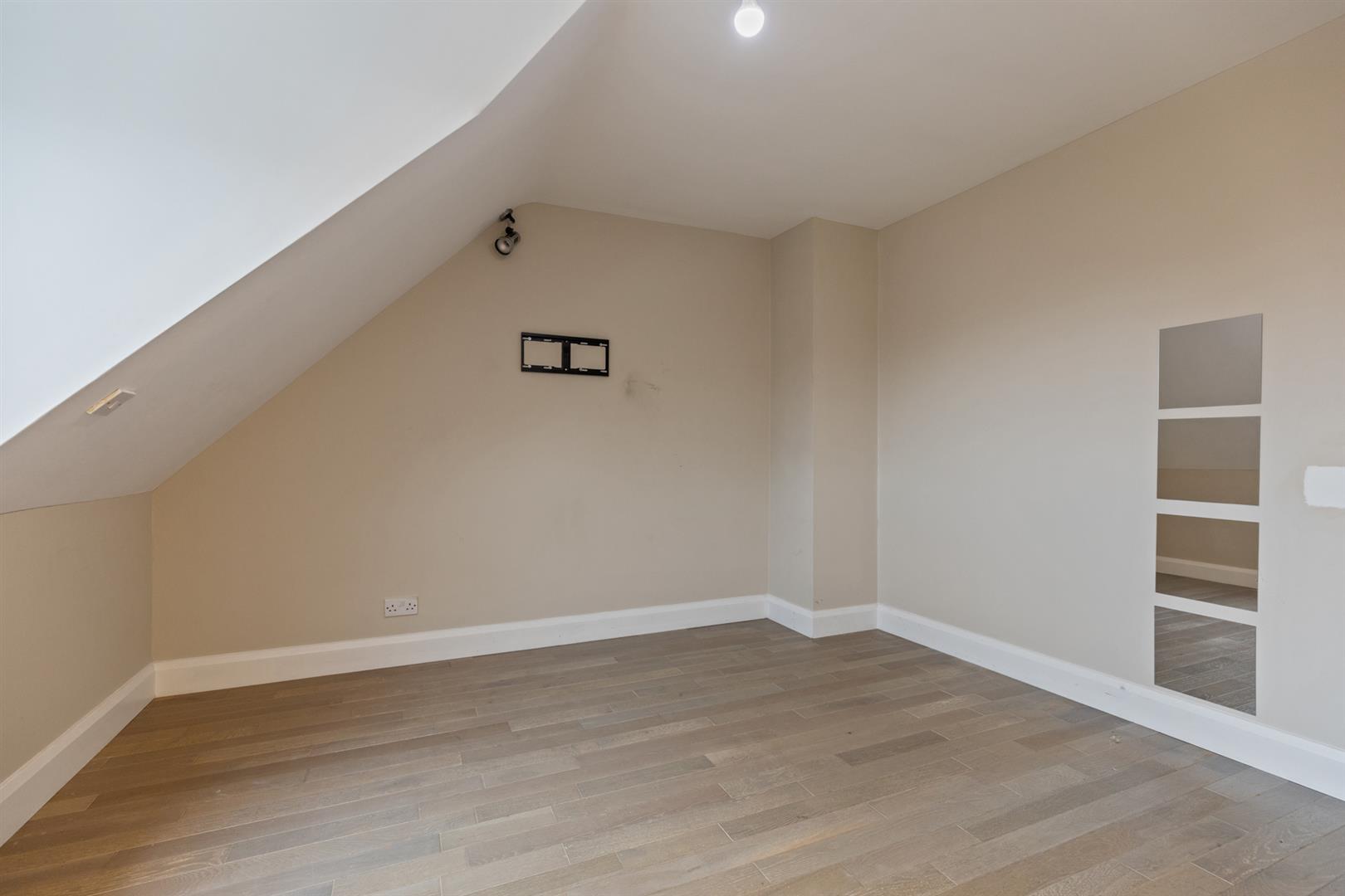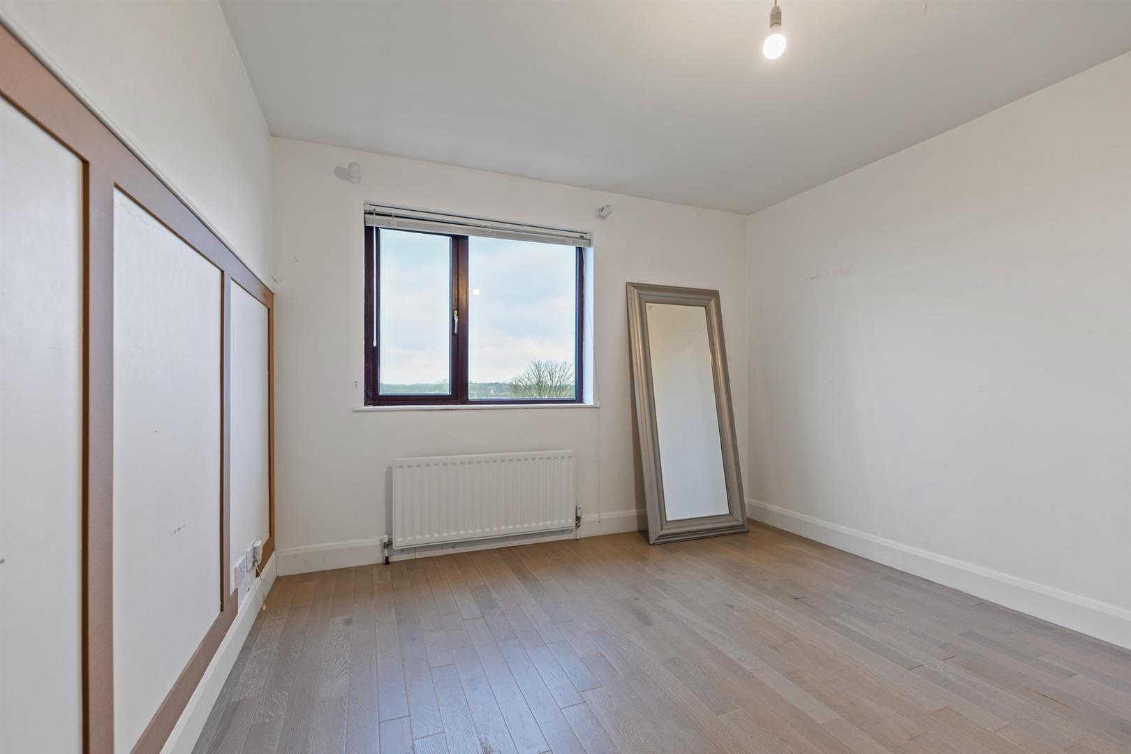 Double bedroom with wood laminate flooring.