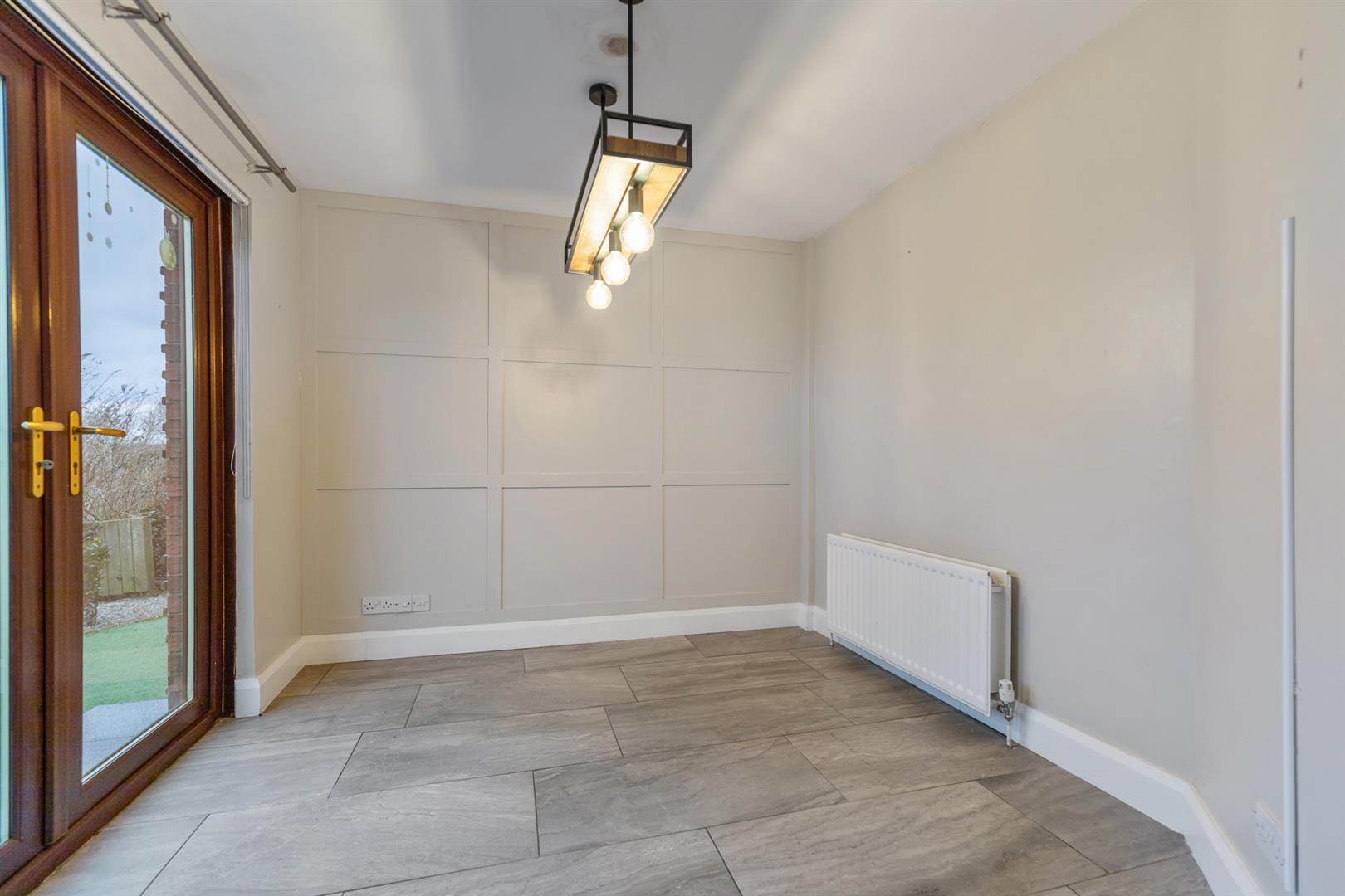 Tiled floor, double patio doors out onto enclosed rear garden.