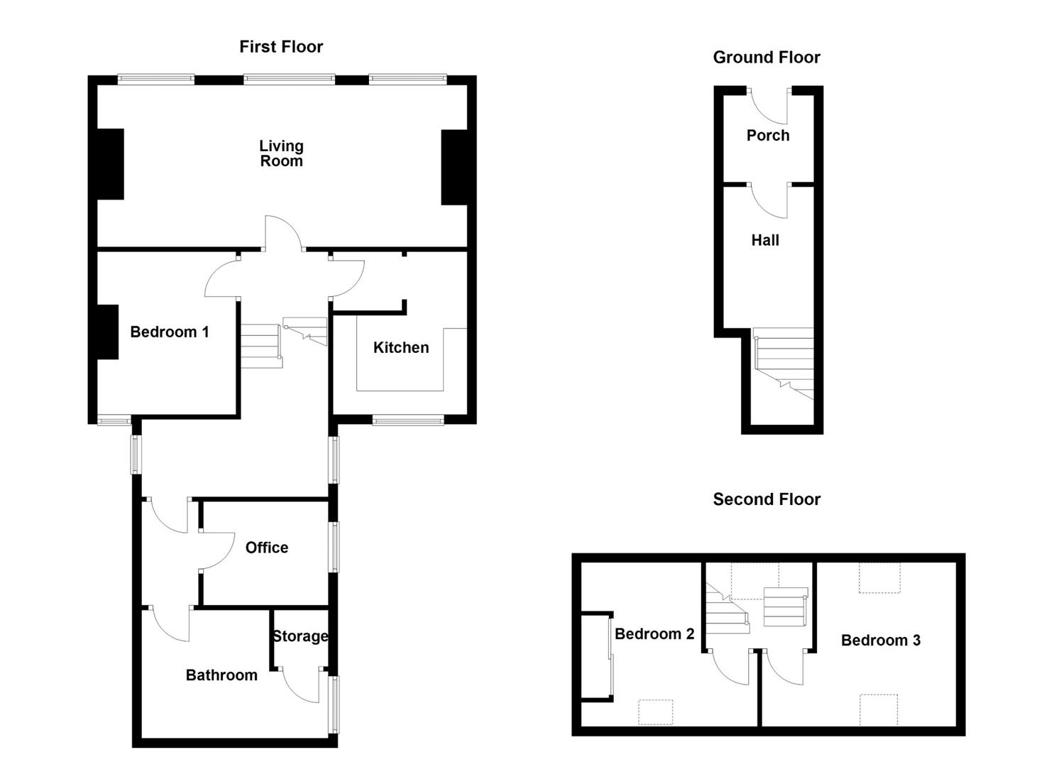 Bedroom One, a well-proportioned double room, is located on the first floor. The second floor hosts two further double bedrooms, both benefiting from eaves storage and Velux style windows, with Bedroom Two also offering built-in sliding wardrobes.