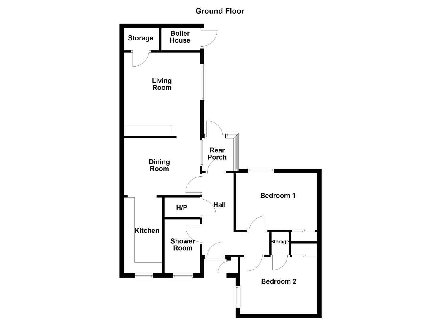 The property provides well-presented accommodation comprising entrance hall with built-in storage and hot press, a modern shower room fitted with a contemporary white suite, two double bedrooms with built-in storage, and a comfortable living room featuring a fireplace and additional storage. A separate dining room leads through to a galley-style kitchen with a range of fitted units and space for everyday appliances. A rear porch provides access to the enclosed yard.