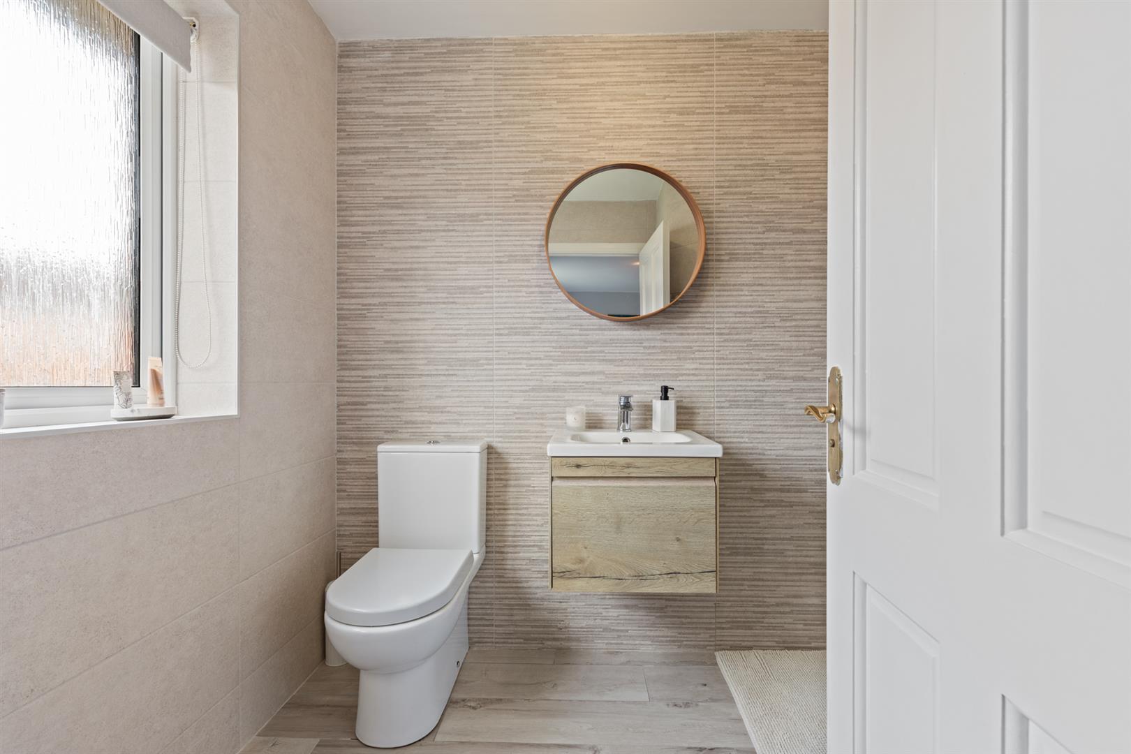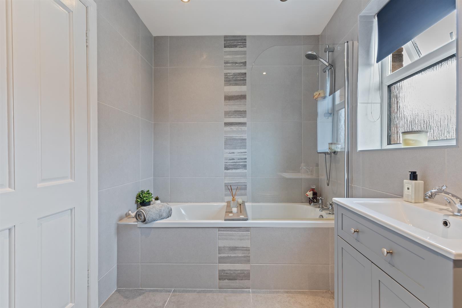 Upstairs, there are three well-proportioned bedrooms, including a principal bedroom with modern ensuite shower room. A contemporary family bathroom completes the first floor, finished with a modern white suite and full tiling.