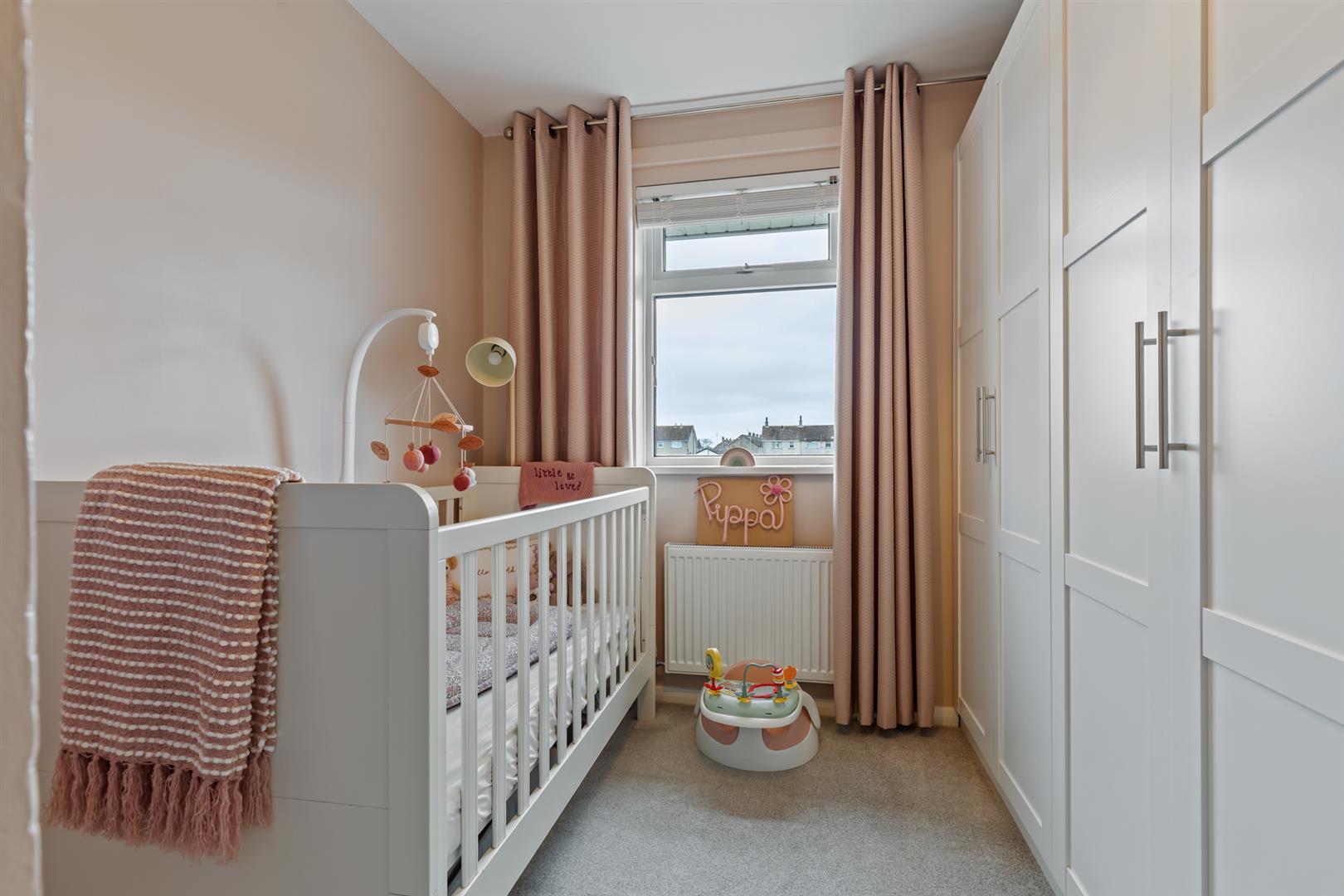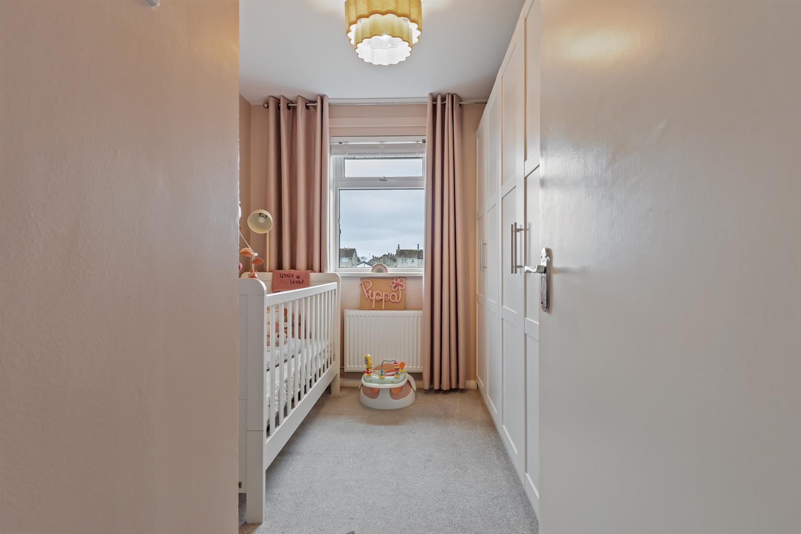 On the first floor, there are two well-proportioned double bedrooms, both benefiting from built-in storage, along with a family bathroom finished with a contemporary white suite and quality fittings.