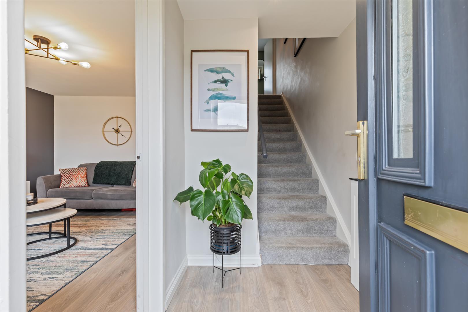 Bright, Modern Interior With A Welcoming Entrance Hall And Comfortable Living Room.
