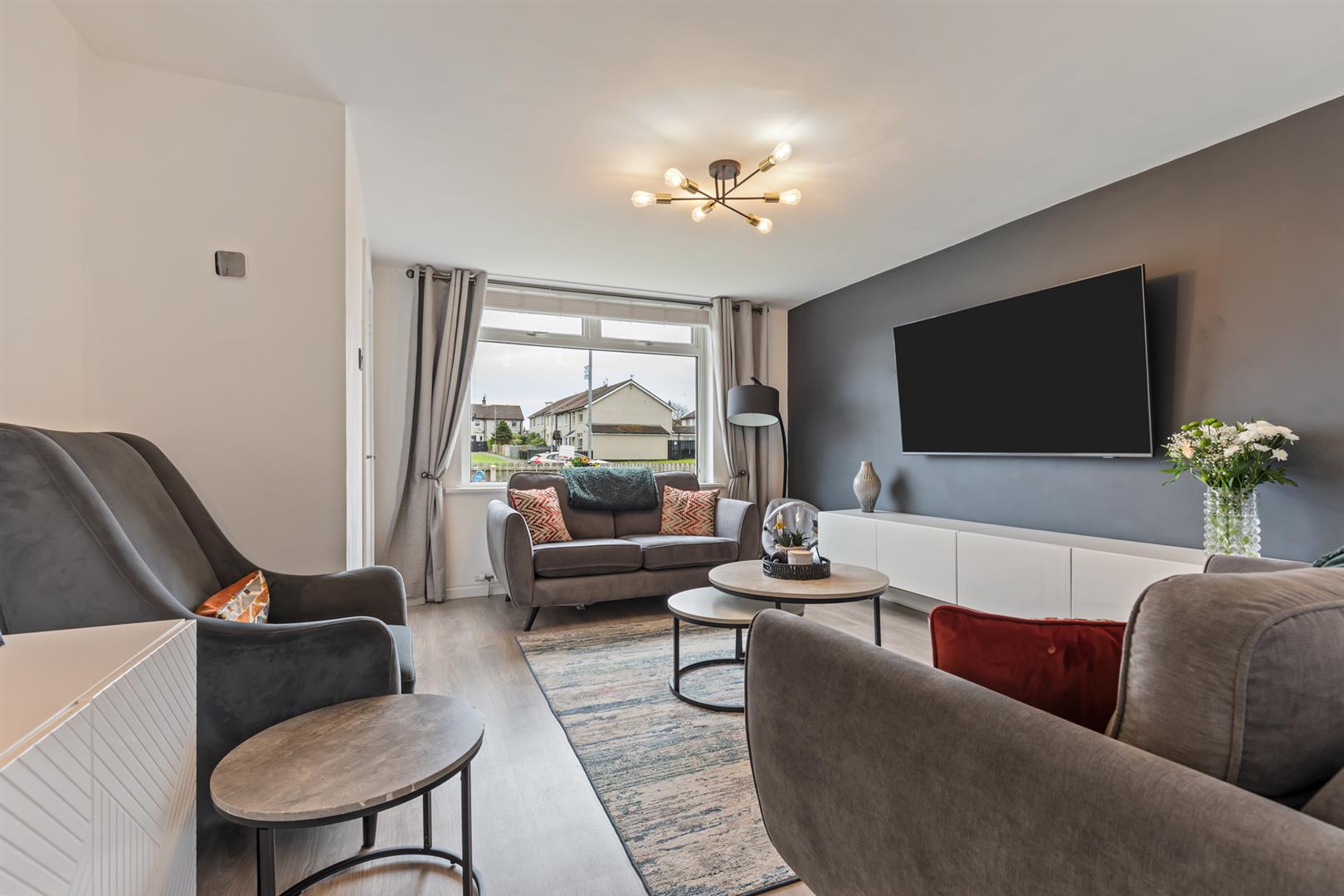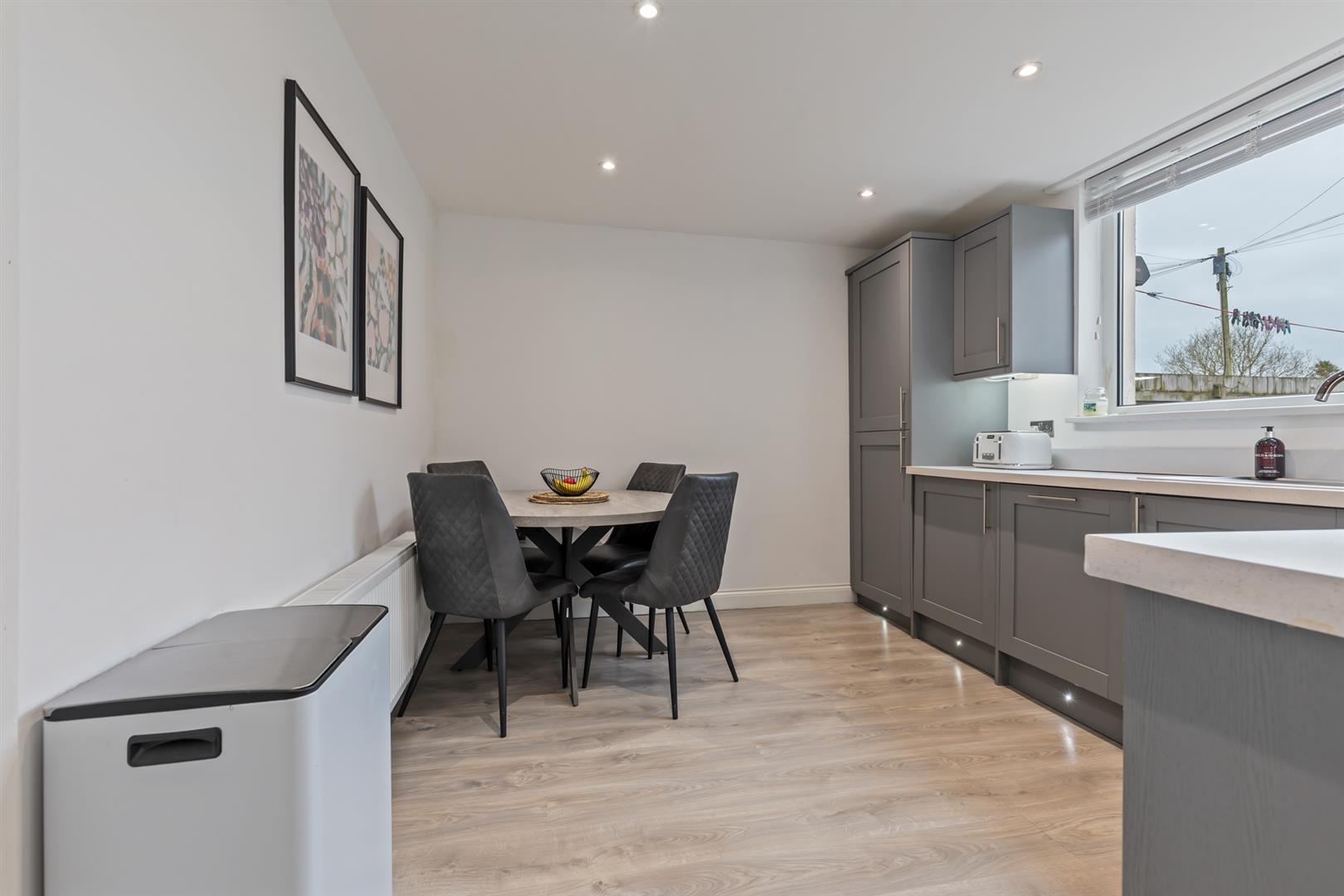 Internally, the property comprises a welcoming entrance hall leading to a comfortable living room. The contemporary fitted kitchen provides an excellent range of units, integrated appliances and space for dining. A separate utility room offers additional storage and direct access to the enclosed rear garden. The ground floor is further complemented by a versatile fourth bedroom and a stylish shower room fitted with a modern white suite.
