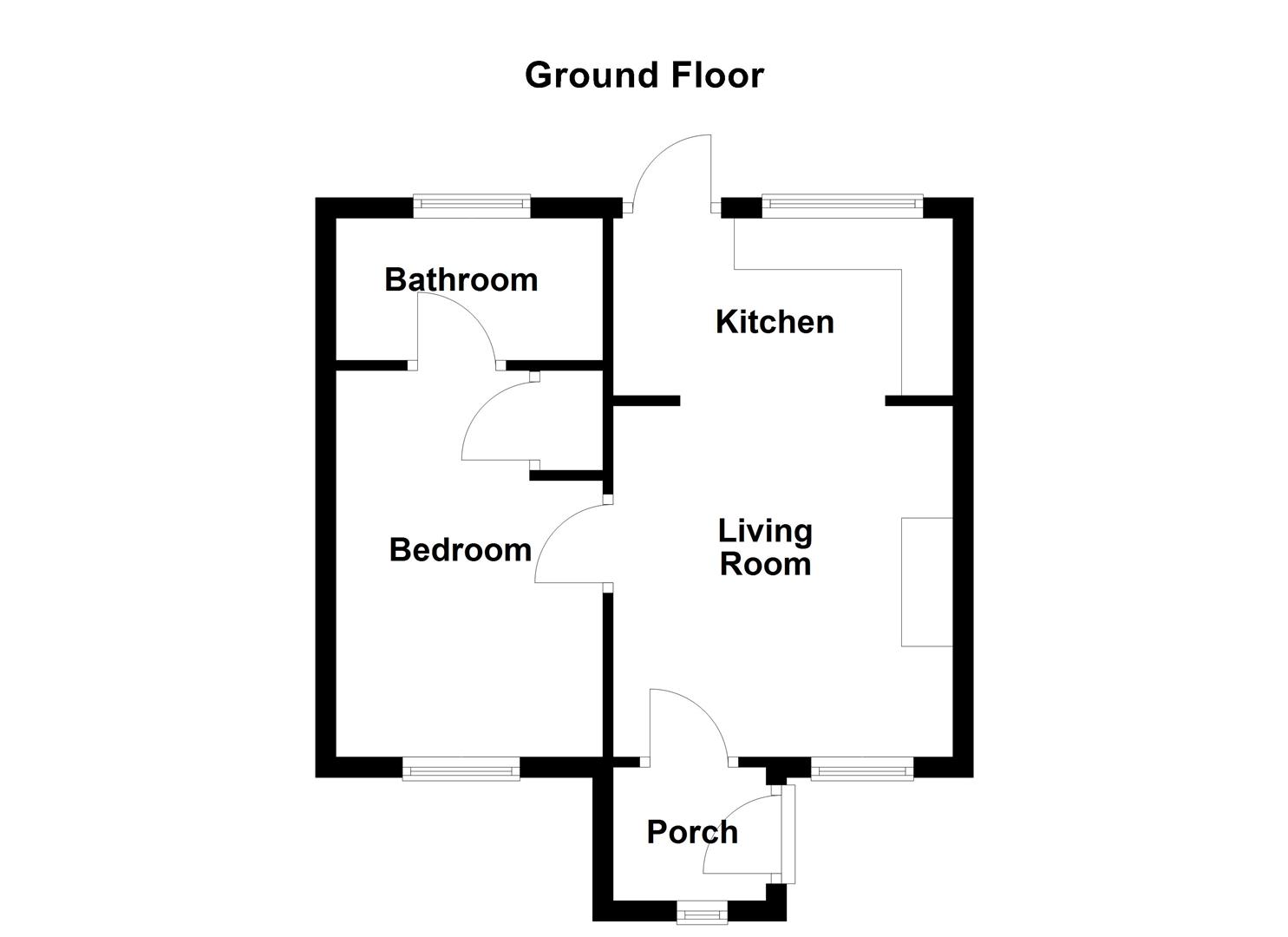 Internally, there is an entrance porch leading to a bright living room open plan to the kitchen, fitted with a range of units, integrated oven, hob and extractor, and access to the rear garden. There is one well-proportioned bedroom with built-in storage and a bathroom with white suite and overhead shower.