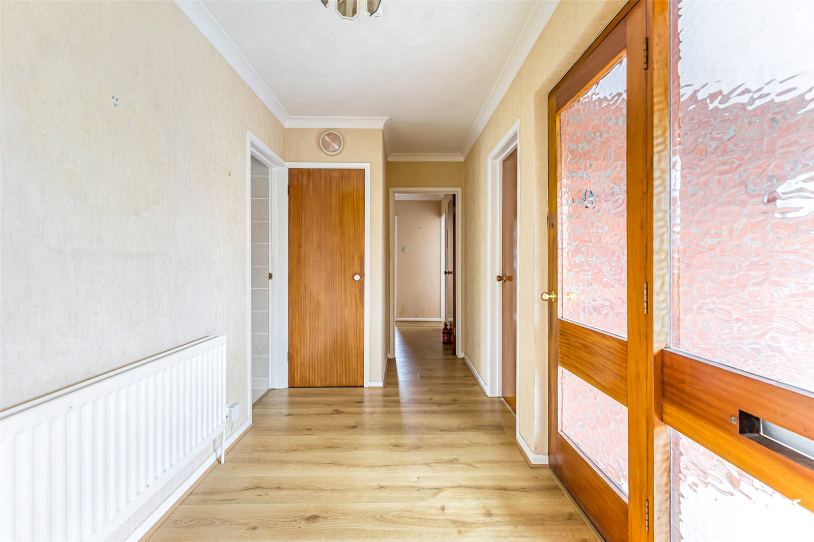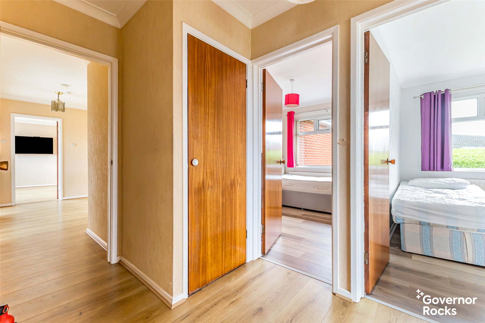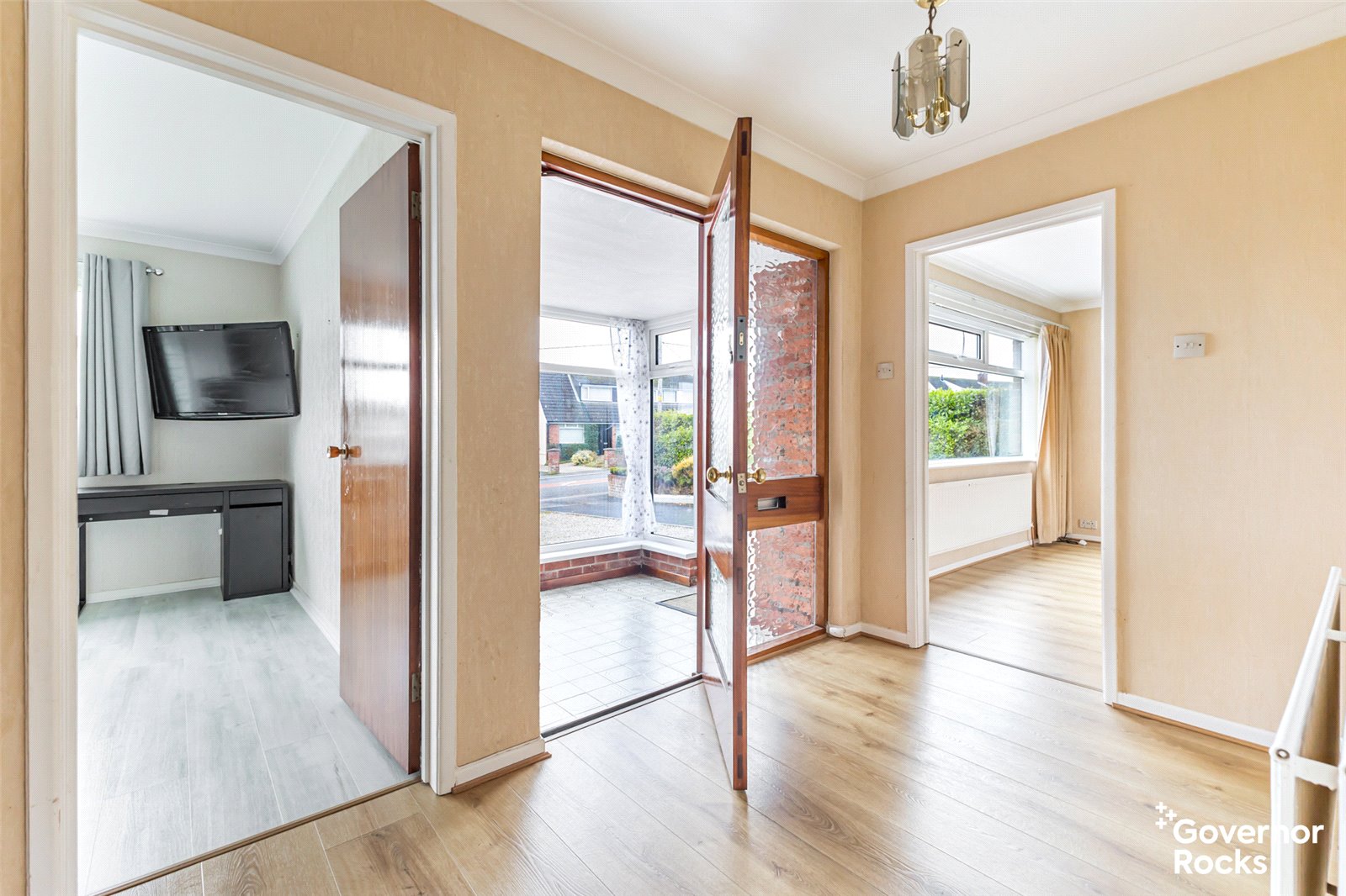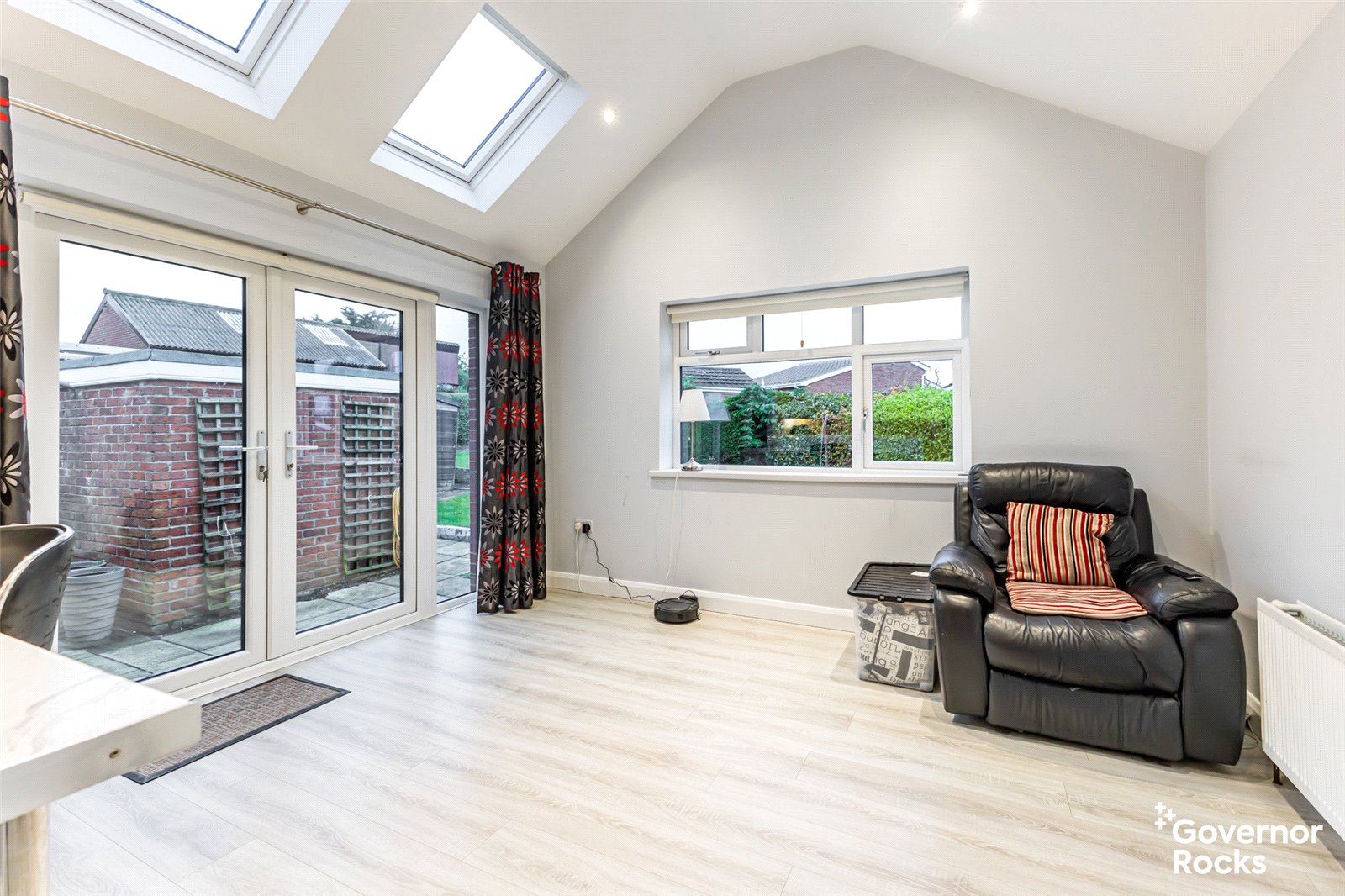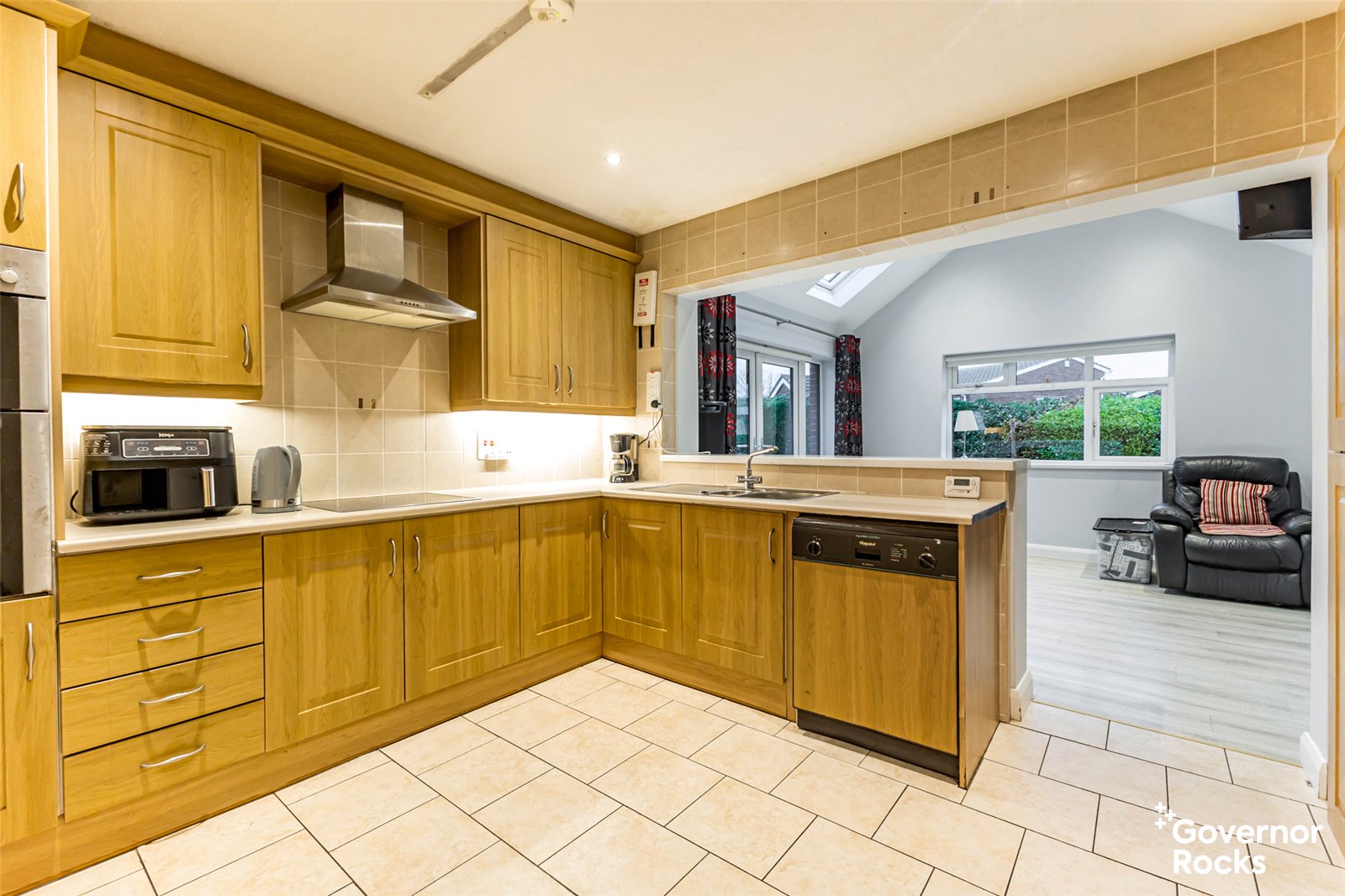 This bright and welcoming home has been meticulously maintained throughout and offers well-proportioned accommodation ideal for downsizers seeking single-storey living or families desiring generous space. Comprising four comfortable bedrooms, each with built-in storage, the property effortlessly combines functionality with comfort. The lounge features a tiled feature fireplace and wood laminate flooring, creating a cozy space to unwind. The modern kitchen is fitted with a range of high and low-level units, integrated appliances, and laminate work surfaces, flowing seamlessly into a large sunroom. The sunroom, with its vaulted ceiling, Velux-style windows, and patio doors opening to the west-facing garden, floods the home with natural light and offers a peaceful spot to relax while enjoying the afternoon sun.