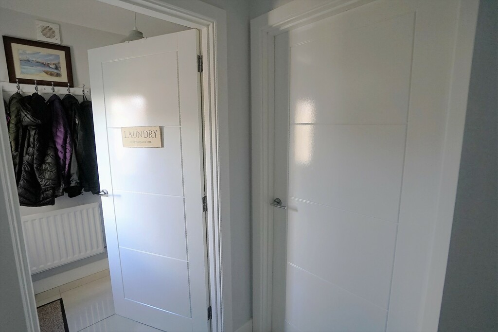 Black composite entrance door,. Porcelain tiled floor.