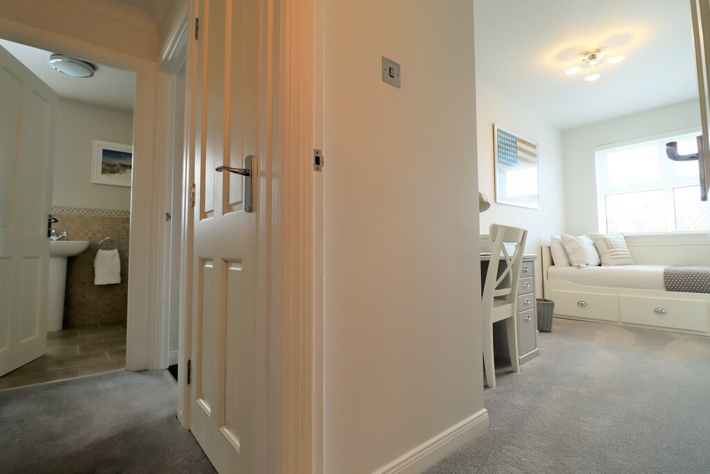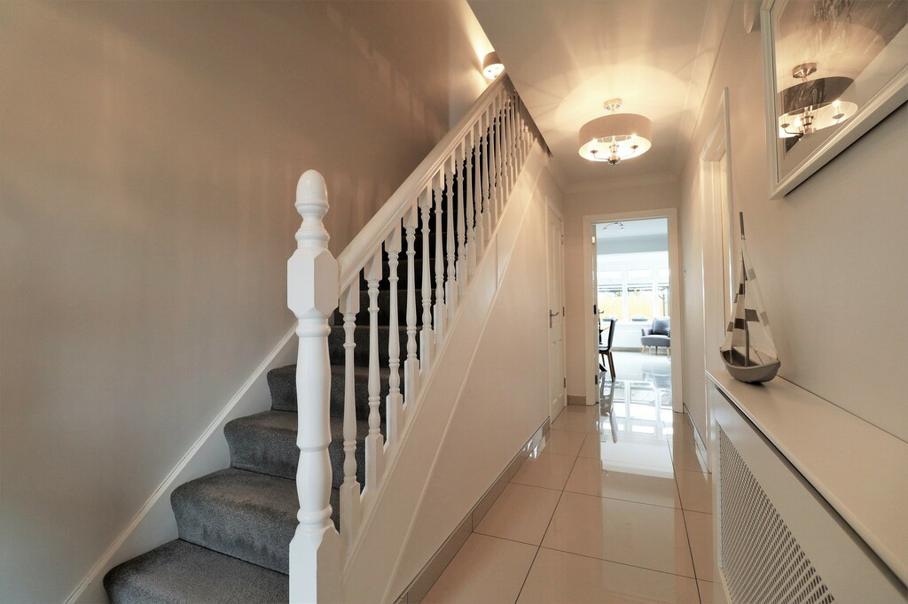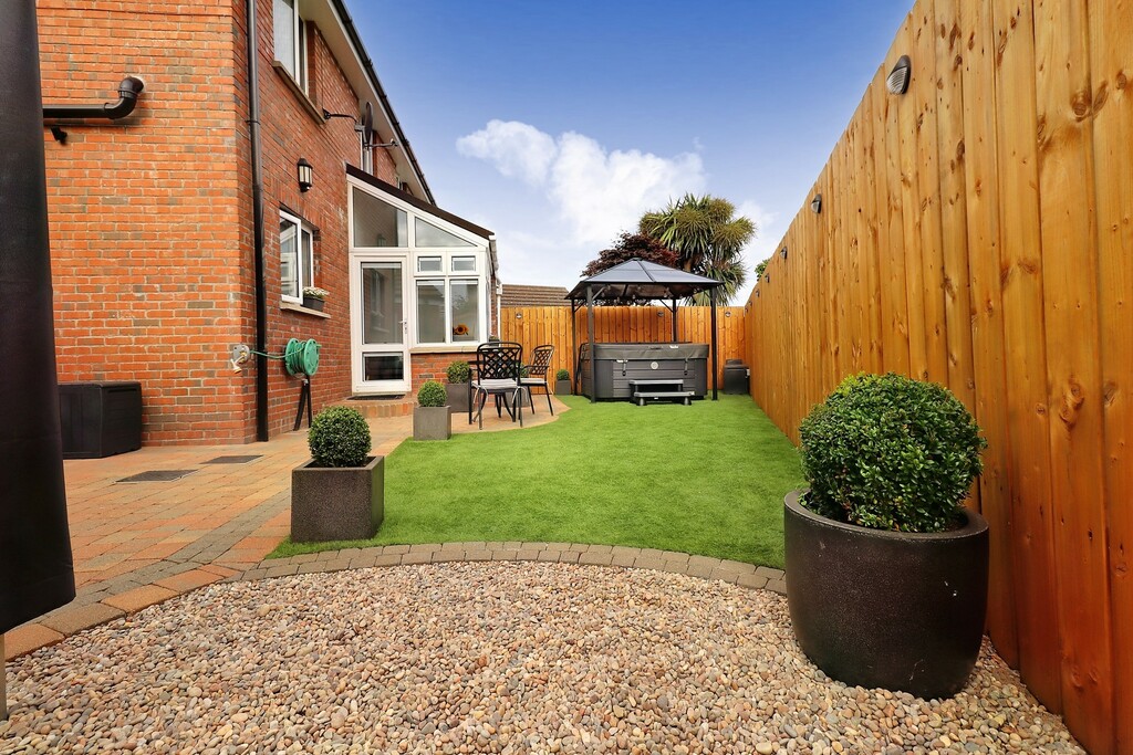 This immaculately presented property offers spacious and stylish accommodation throughout presenting a great opportunity to purchase a contemporary home in perfect condition. Situated in a sought-after residential development just off the Millisle Road in Donaghadee the property is in a perfect setting in a quiet cul de sac with the town centre, schools and local amenities all within easy reach as well as beautiful coastal walks within a few minutes. The property has been upgraded to the highest standard by the current owner with no expense or attention to detail spared. Downstairs comprises of bright entrance hallway with polished tiled flooring, spacious and stylish lounge with feature Stovax Sheraton cast iron log burner with tiled slate hearth and solid oak flooring, large open plan kitchen with recently fitted bespoke contemporary two tone painted shaker style kitchen with breakfast bar, quartz worktops, Franke sink, Quooker tap, built in Neff appliances, open to casual dining area and sunroom, with cosy roof, overlooking the sunny rear gardens. Upstairs there are three perfectly presented spacious bedrooms, master with built in robes, ensuite shower room and views over the surrounding countryside and modern family bathroom. Externally the property has brick paviour driveway to the front, Easigrass artificial lawn and composite double gates to side providing extra parking with security lighting and outdoor socket. To the rear are generous sized private enclosed south facing gardens laid in Easigrass artificial lawn and brick paviour patio area, also with the unique benefit of not being overlooked! Due to its high standard of finish and presentation throughout this property will undoubtably have huge appeal!