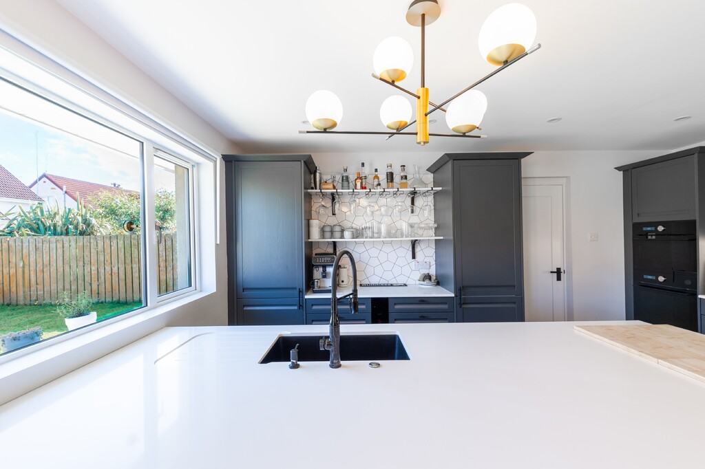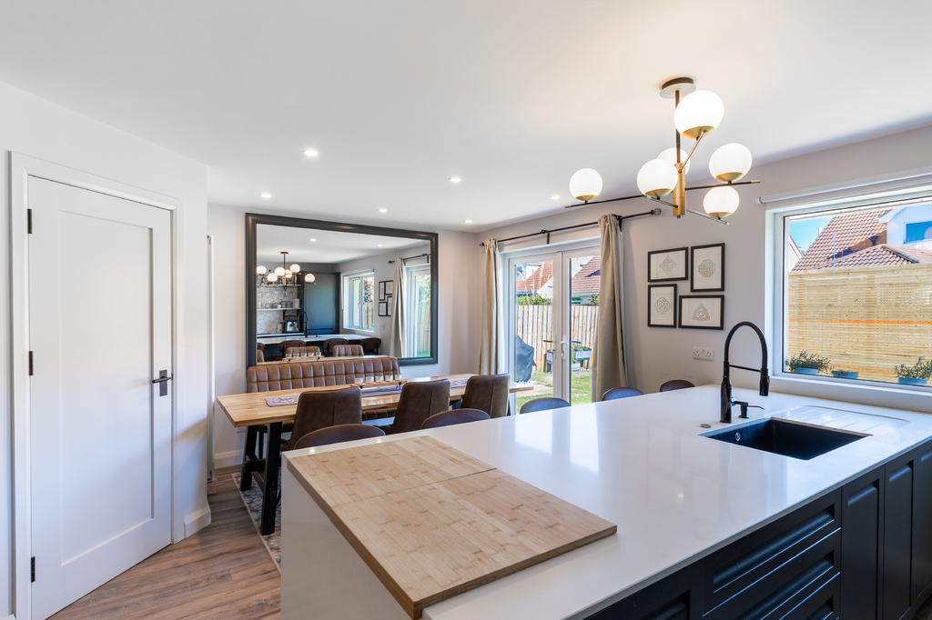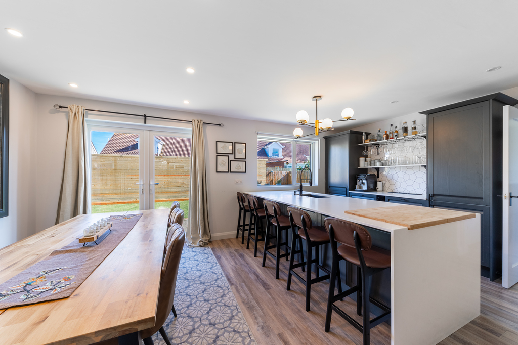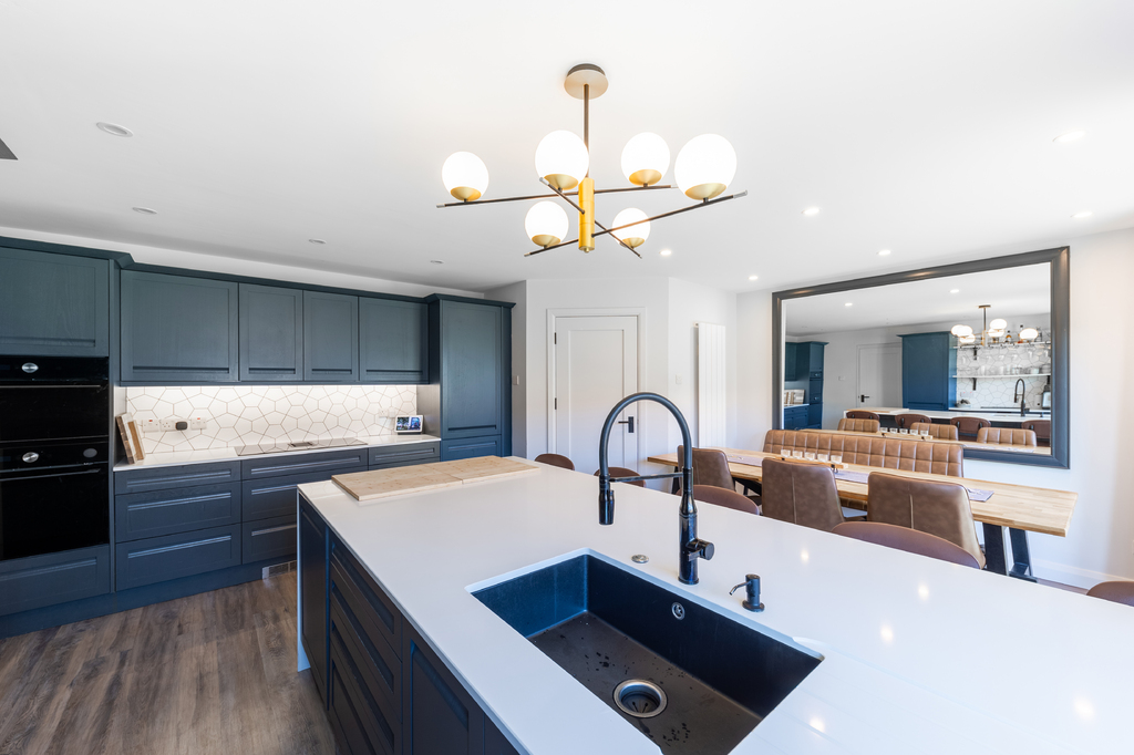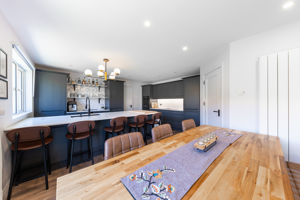 Bespoke Luxury Fitted Kitchen with Quartz Works Surfaces, Centre Island and Casual Dining Area